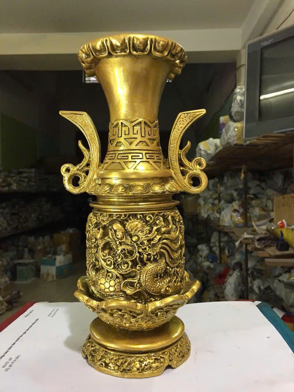 ✨Lọ hoa họa rồng size nhỏ CTVD1 16 x 13 x 29.2cm mạ vàng