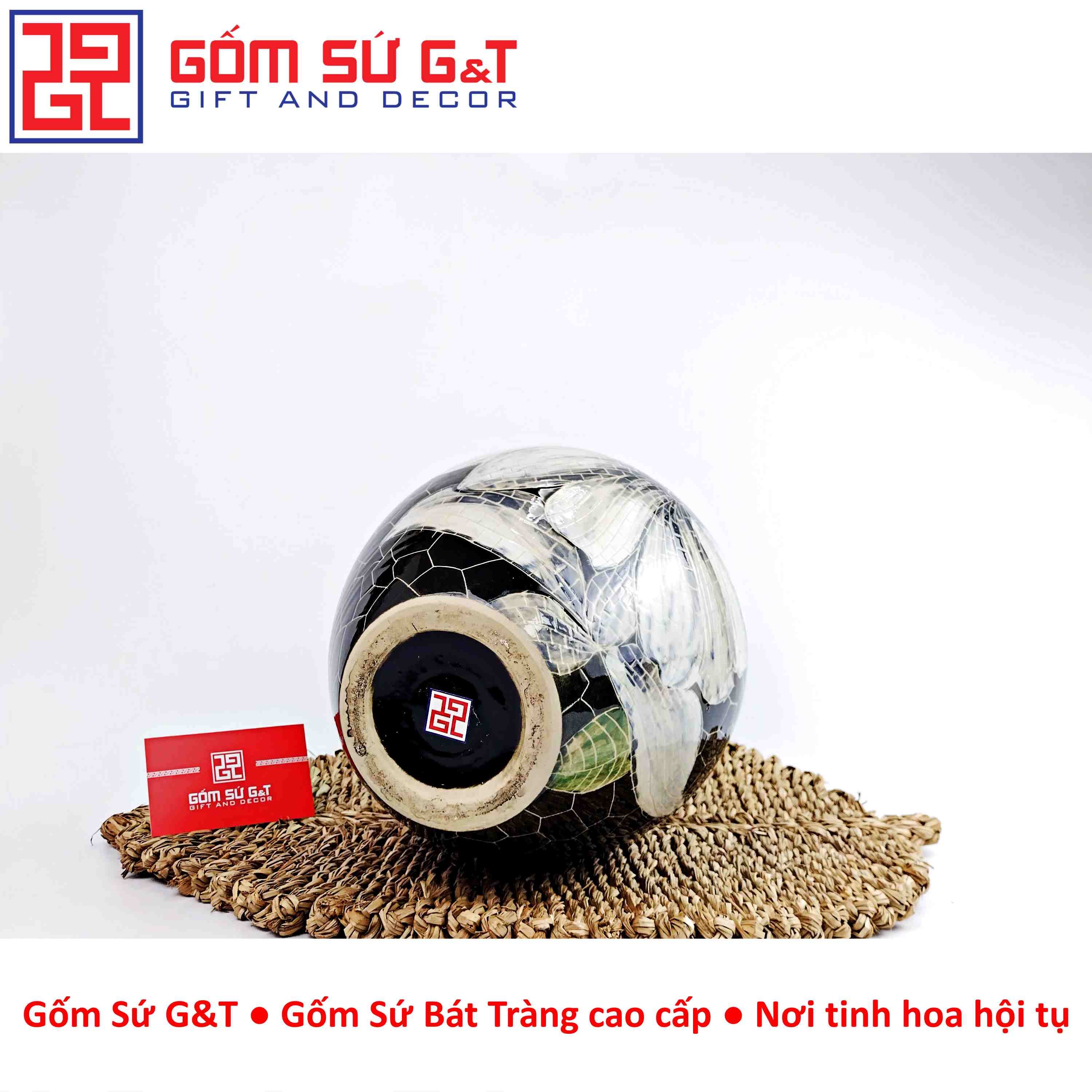 Phong cách hiện đại: Mix cùng đồ decor kim loại, tạo sự tương phản. Địa Chỉ Mua Hàng Uy Tín – Gốm Sứ Bát Tràng Chính Hãng Bạn muốn sở hữu lọ hoa mosaic miệng loe khắc hoa loa kèn chính hãng? Hãy đến với: Cửa hàng Gốm Sứ G&T – Địa chỉ uy tín hàng đầu Việt Nam. Cam kết chất lượng: Bảo hành 1 đổi 1 nếu lỗi do nhà sản xuất. Giao hàng toàn quốc: Miễn phí vận chuyển cho đơn hàng từ 300k. Thông tin chi tiết Kích thước Cao 29 cm Miệng 16 cm Họa tiết Hoa loa kèn Thành phần 1 lọ hoa Nhiệt độ nung 1300 độ C Màu sắc Đen Xuất xứ Bát Tràng - Việt Nam Chất liệu Gốm sứ cao cấp In logo Theo yêu cầu Đặc tính sản phẩm An toàn sức khỏe, thân thiện môi trường