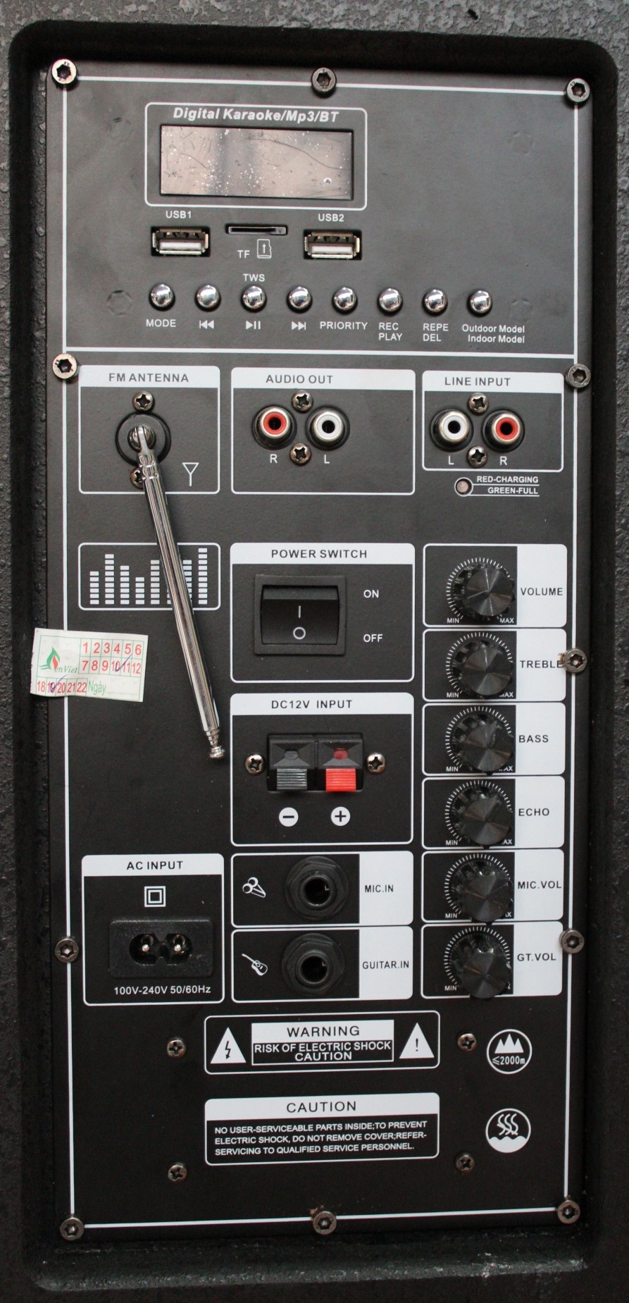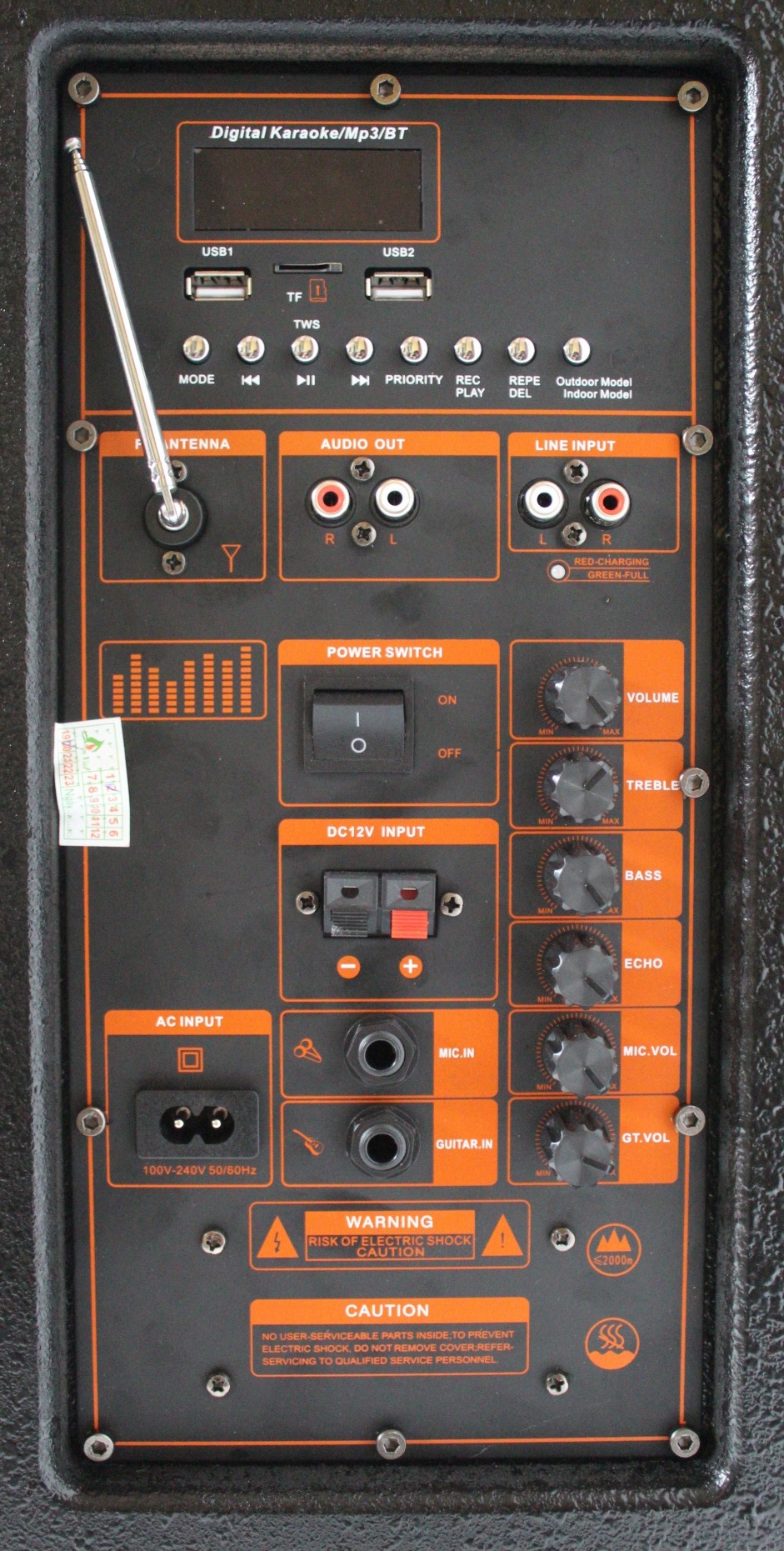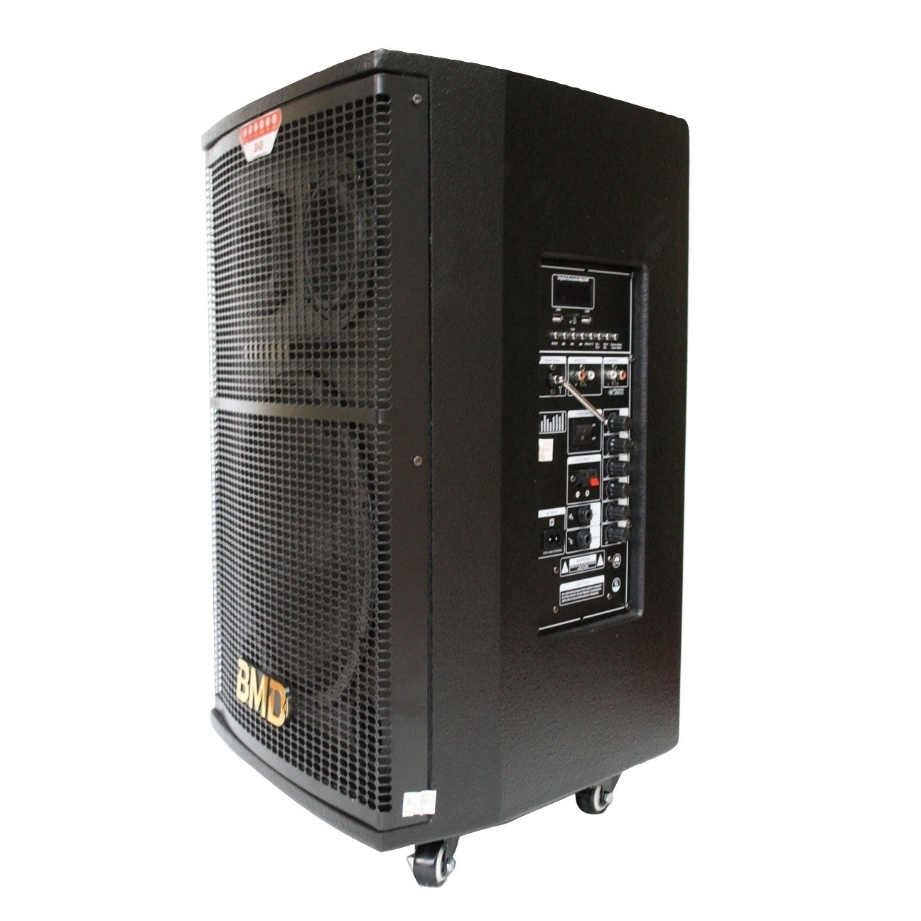Thiết kế cứng cáp, tông màu mạnh mẽ. Tay nắm chắc chắn kèm bánh xe tiện lợi khi di chuyển. Hỗ trợ nhiều kết nối thông dụng hiện nay như Bluetooth, đài nghe FM, USB, thẻ nhớ, Jack bông sen, Jack Micro, Jack kết nối Guitar Cổng nguồn DC 12V tiếp thêm điện dự phòng khi sử dụng Thời gian nghe nhạc và hát karaoke lâu dài nhờ dung lượng điện ắc-quy lớn Công suất 600W lớn uy lực nhờ có bass 30cm (3 tấc) lớn Thùng gỗ chắc chắn dày dặn Trọng lượng: 20kg Kích thước: 43x43x69 (cm) Remote điều khiển loa từ xa nhanh chóng Tặng kèm 2 micro không dây tiện dụng Thương hiệu: BMD Sản xuất tại: Việt Nam