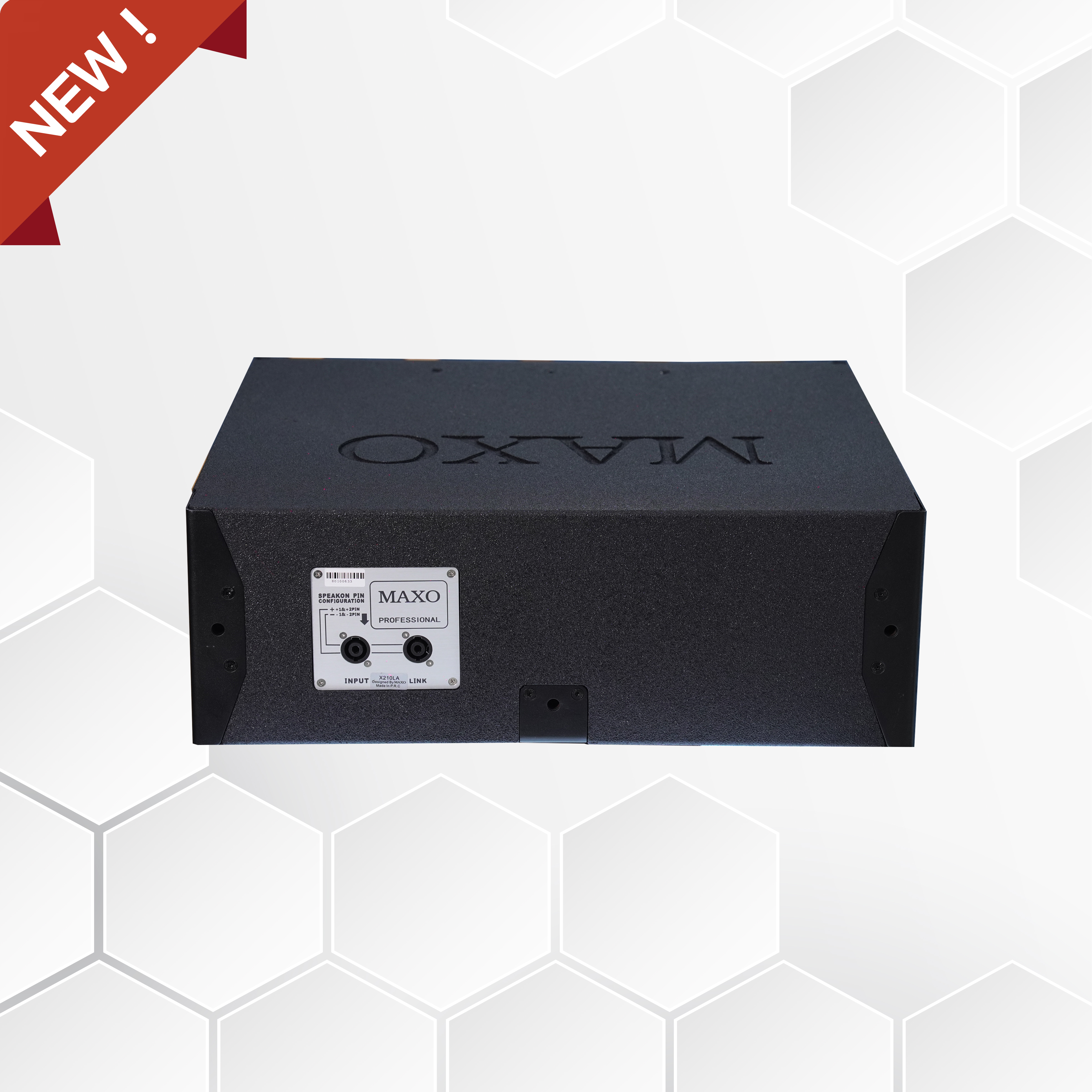 Mặt trên: vỏ thùng có khắc âm logo MAXO. Bên hông có tay cầm được làm bằng chất liệu nhựa sợi thủy tinh chắc chắn.Trên thùng loa cũng có tem chống giả để xác  nhận bạn sở hữu đúng hàng chính hãng từ MAXO