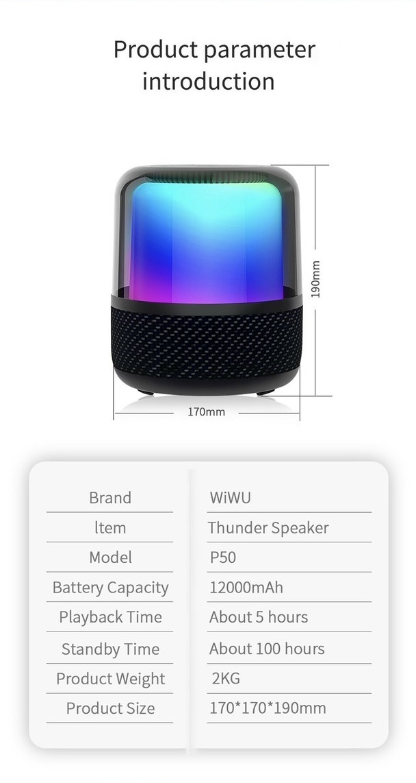 Loa không dây Wiwu P16 MAX kèm mích hát Thương hiệu: Wiwu Mô tả sản phẩm - Âm thanh cao cấp với siêu trầm - Hỗ trợ: MP#, WMA, TF, Cuộc gọi thoại BT, AUX