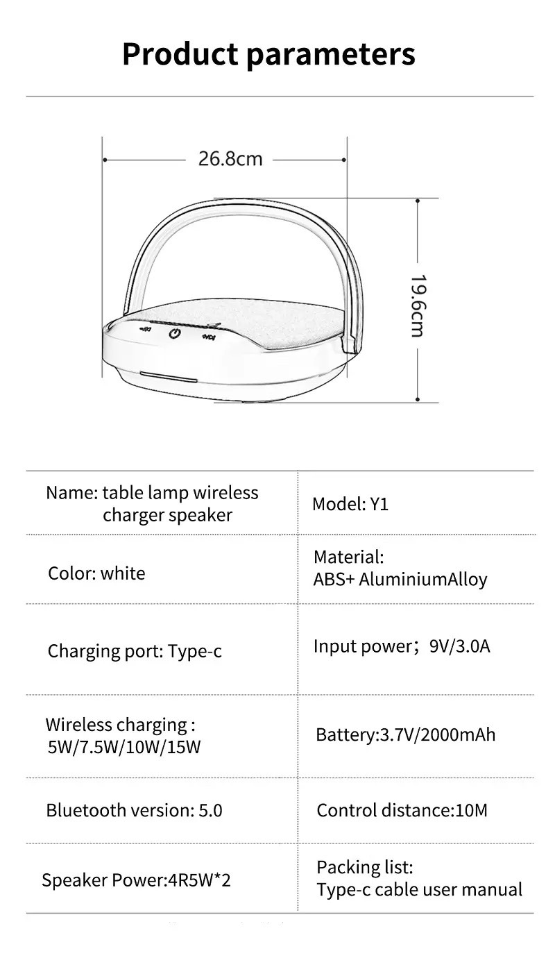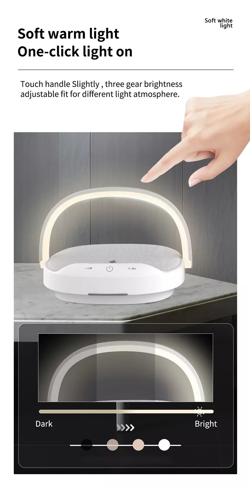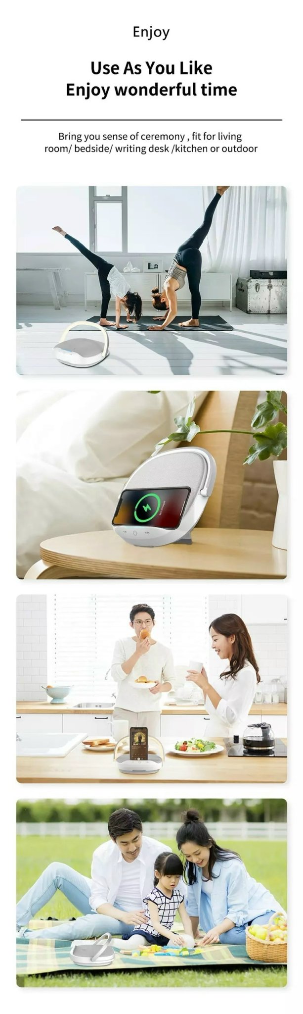 - Tính năng: Loa + sạc không dây + đèn bàn