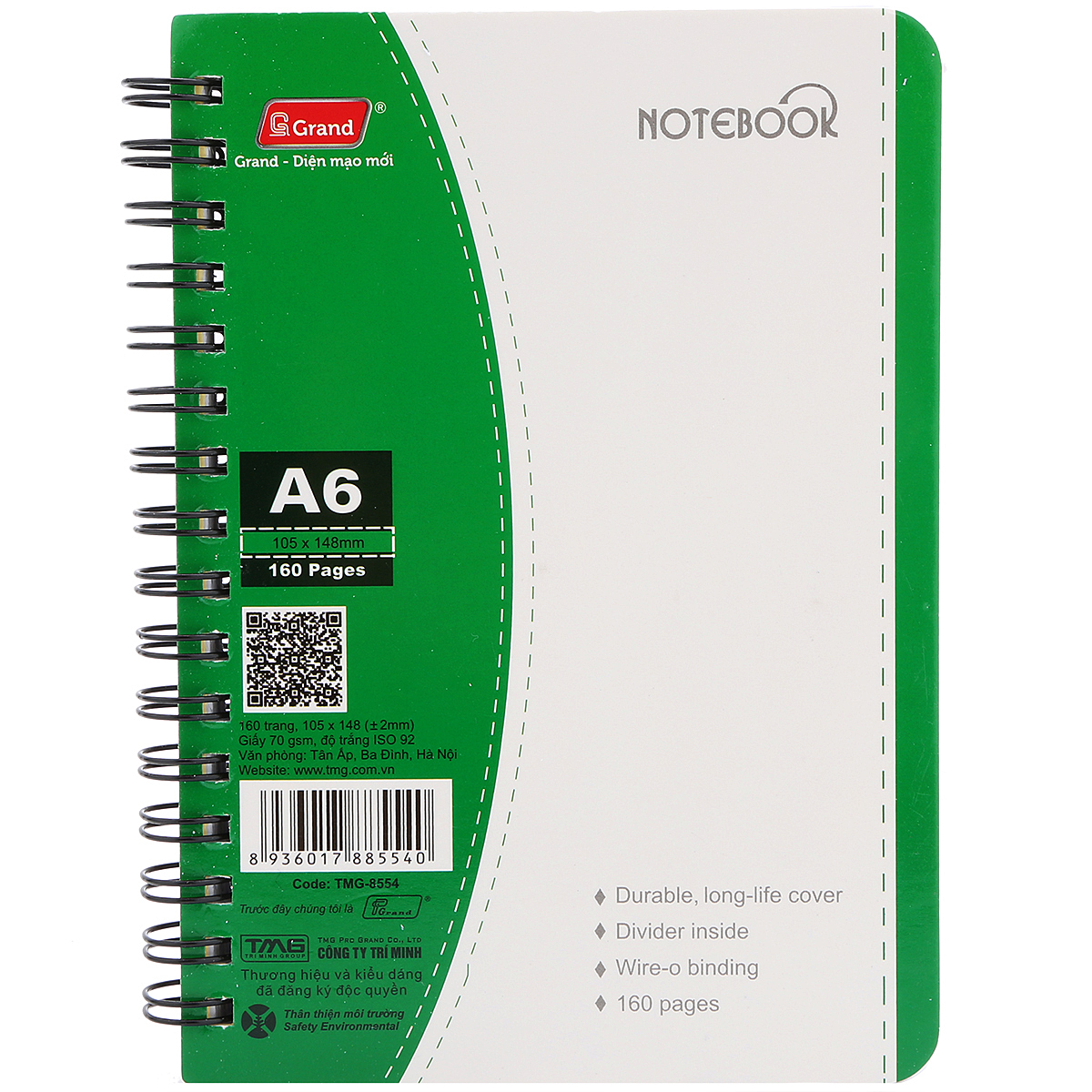 Lốc 2 Sổ Lò Xo Grand 8554 A6 - 160 Trang được thiết kế đẹp, sang trọng, chất lượng với chất liệu giấy cao cấp.