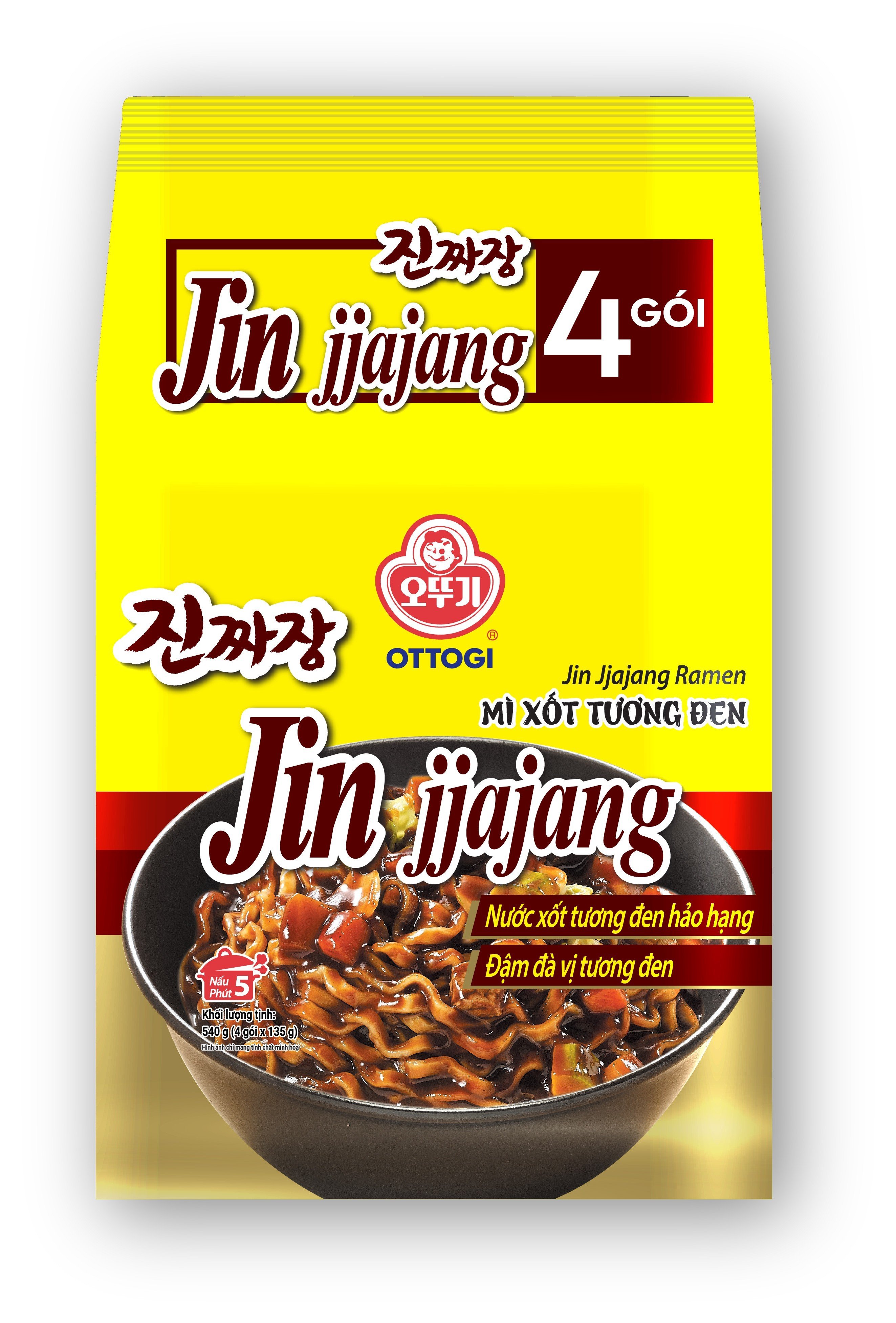✨Lốc 4 gói mì trộn xốt tương đen Jin Jjajang Ramen Ottogi gói 135g*4