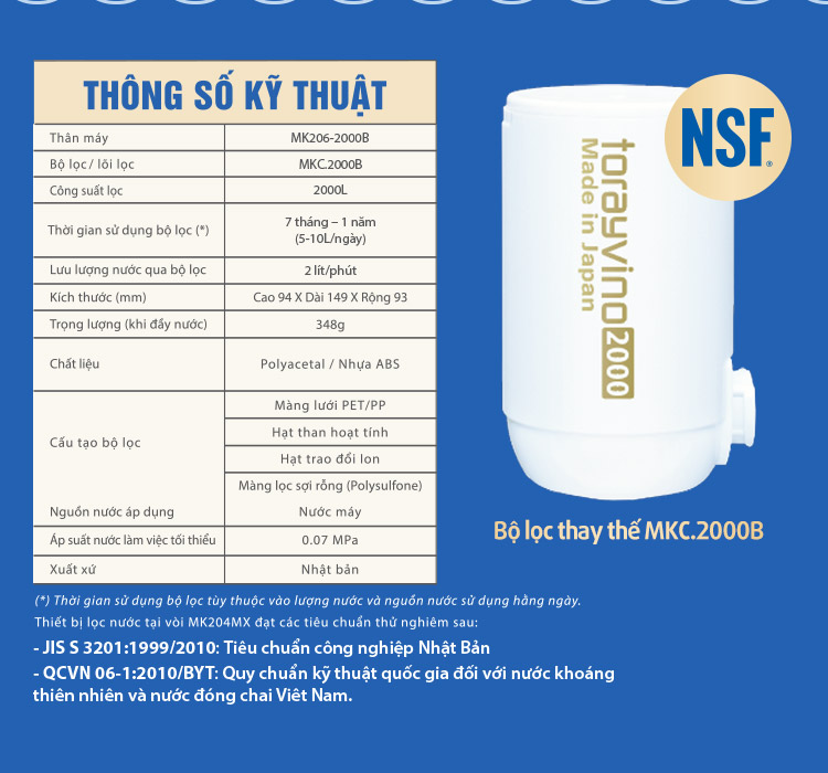 Lõi Lọc Thay Thế Torayvino MKC.2000B là lõi lọc nước mới nhất đến từ Nhật Bản cho các dòng thiết bị lọc nước tại vòi Torayvino với công suất lên đến 2000L, loại bỏ 13