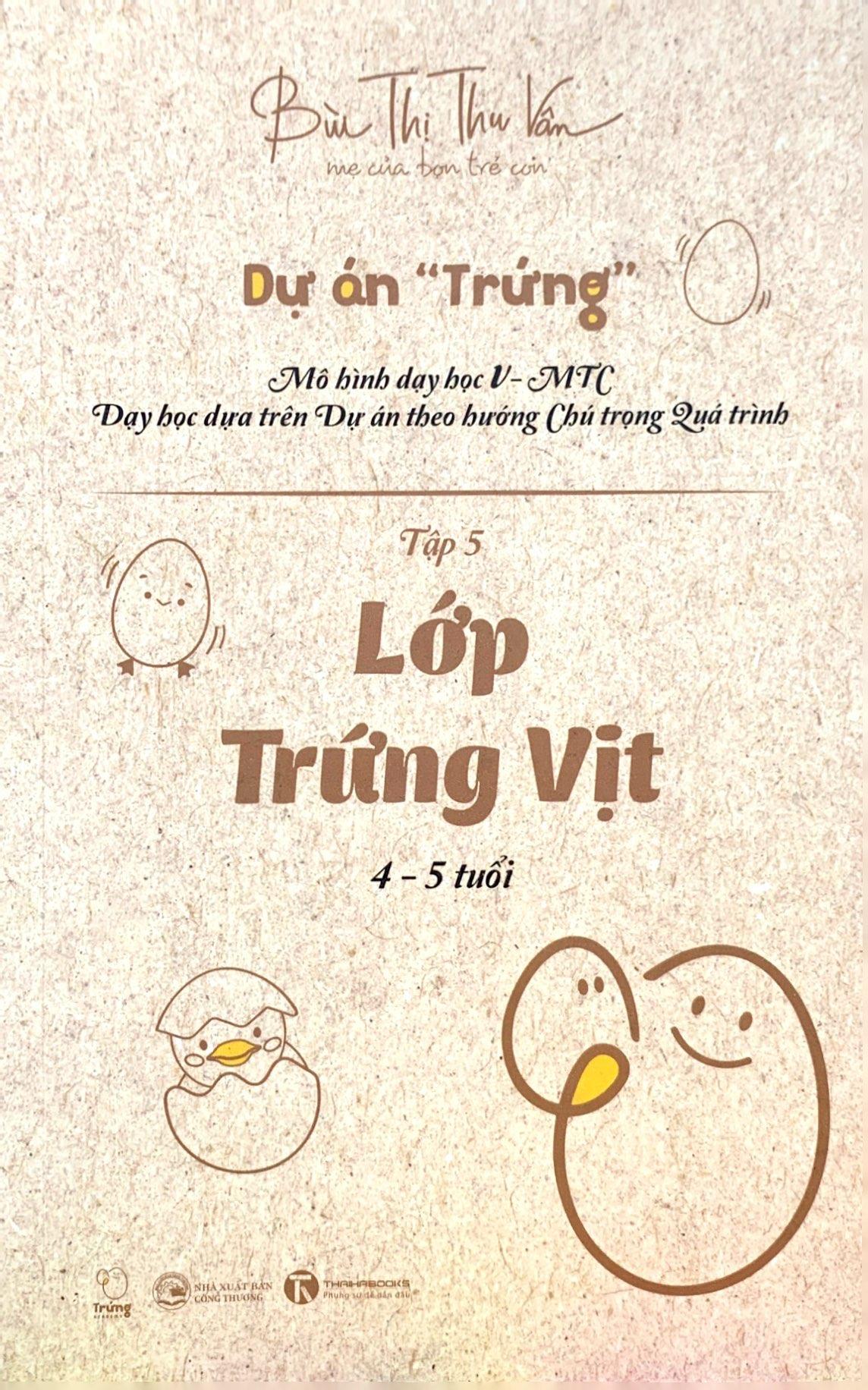 Lớp Trứng Vịt (4 – 5 tuổi) là một trong 6 cuốn sách thuộc Dự án “Trứng” – Mô hình V – MTC, dạy học dự trên Dự án theo hướng Chú trọng Quá trình. V-MTC = Vân – Mẹ trẻ con = Vietnamese – Mother Of Child (Việt Nam – Mẹ của trẻ con), là phương pháp nuôi dạy những đứa trẻ của những “người mẹ Việt”. V-MTC vẫn đang lớn lên mỗi ngày. Mỗi bước chân trong hành trình là những bài học lớn với dự án.