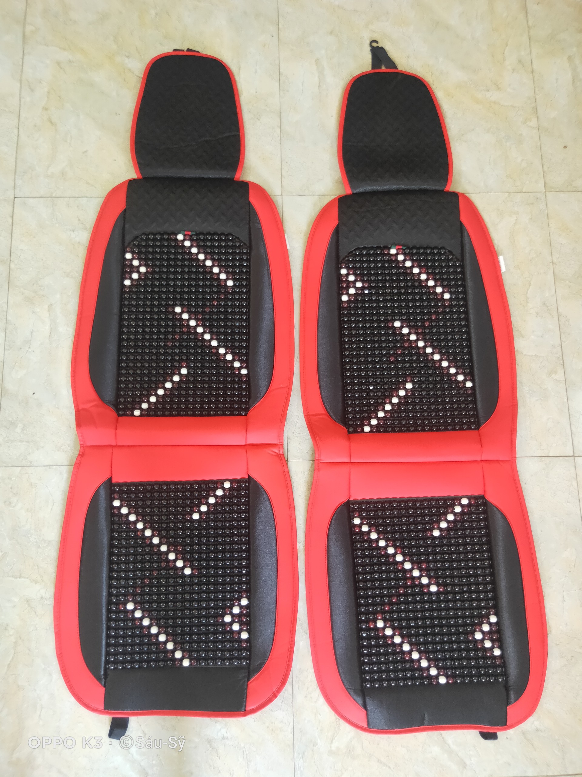 Mua tại TiktokLót Ghế Ô Tô hạt Gỗ Đệm Nỉ Cao Cấp họa tiết hoa văn màu Đen đỏ