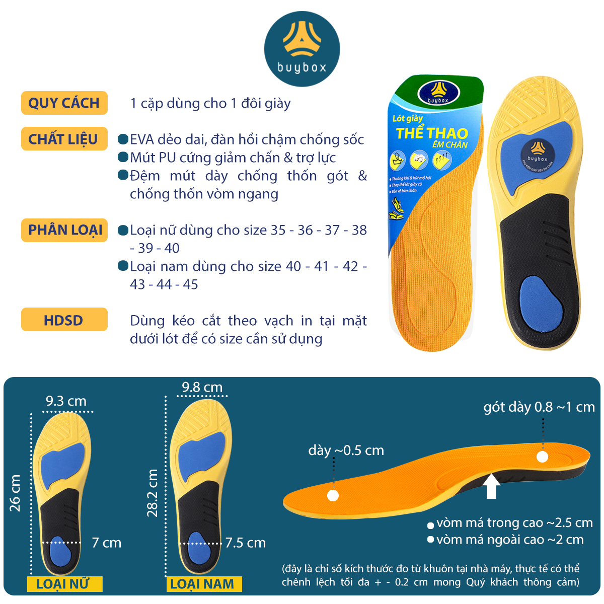 buybox mong muốn đồng hành trên con đường mang lại sự ÊM ÁI & THOẢI MÁI nhất cho đôi chân Khách Hàng. Luôn mang đến những sản phẩm chất lượng và giá thành tốt nhất, không ngừng tiếp thu để cải tiến nhằm phục vụ tôn chỉ chung - MANG LẠI SỰ THOẢI MÁI NHẤT CHO ĐÔI CHÂN CỦA BẠN!!!