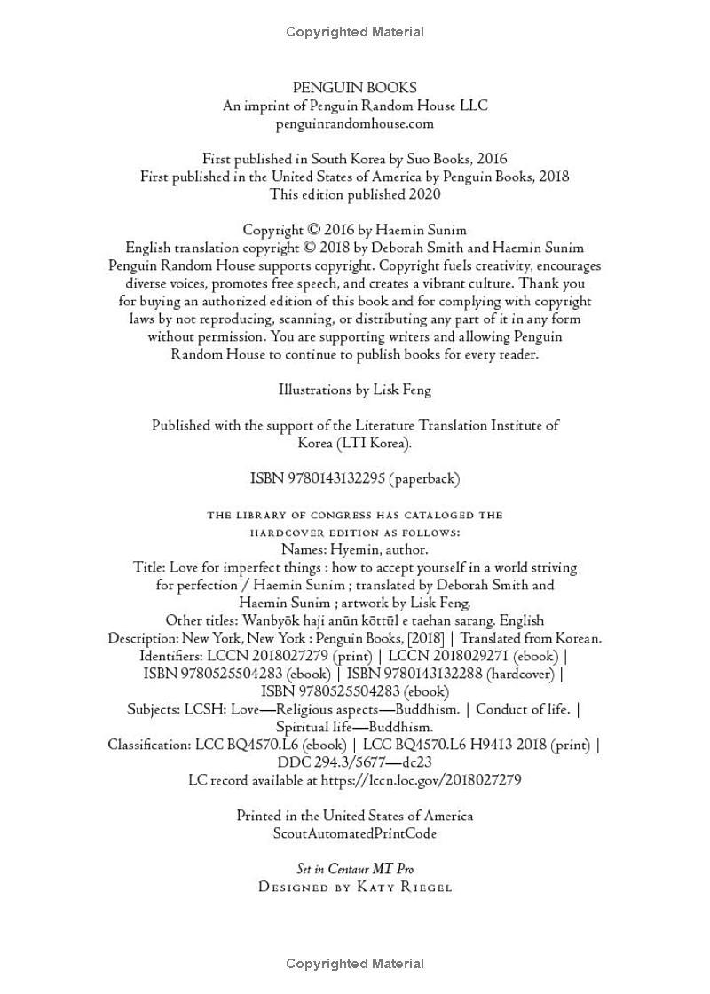 "The world could surely use a little more love, a little more compassion, and a little more wisdom. In Love for Imperfect Things, Haemin Sunim shows us how to cultivate all three, and to find beauty in the most imperfect of things-including your very own self"