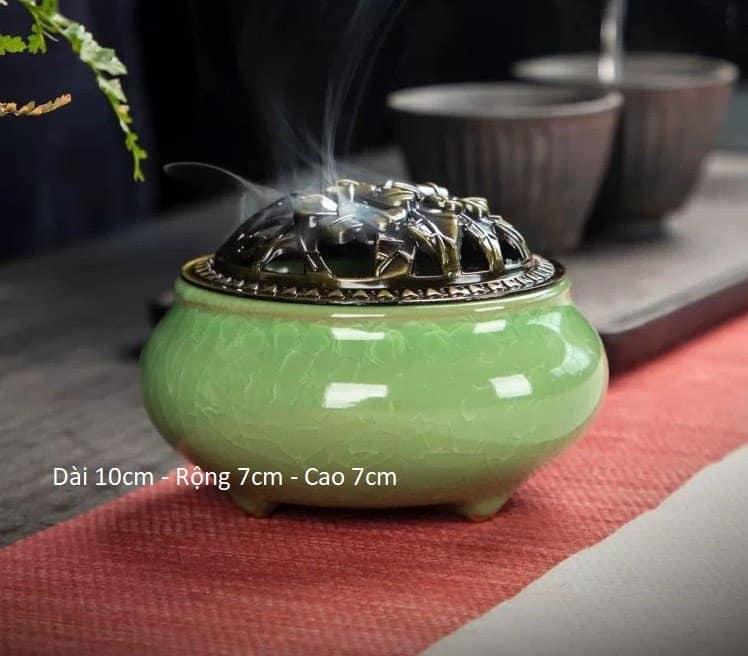 - 1 Lư gốm sứ tráng men cao cấp nắp thiếc