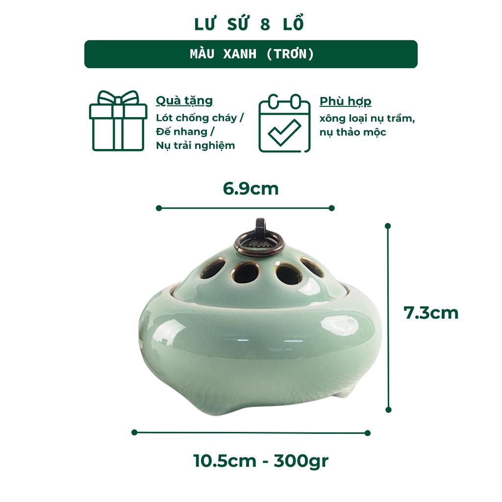 Lư xông nụ trầm hương bằng gốm sứ men cổ cao cấp, nắp đồng hoa văn cổ điển, dùng đốt nụ trầm, nụ thảo mộc, trầm miếng, đá thơm, lá xông. Thiết kế nhỏ gọn, tinh tế, thích hợp cho không gian thiền, phòng ngủ, bàn trà, bàn thờ.