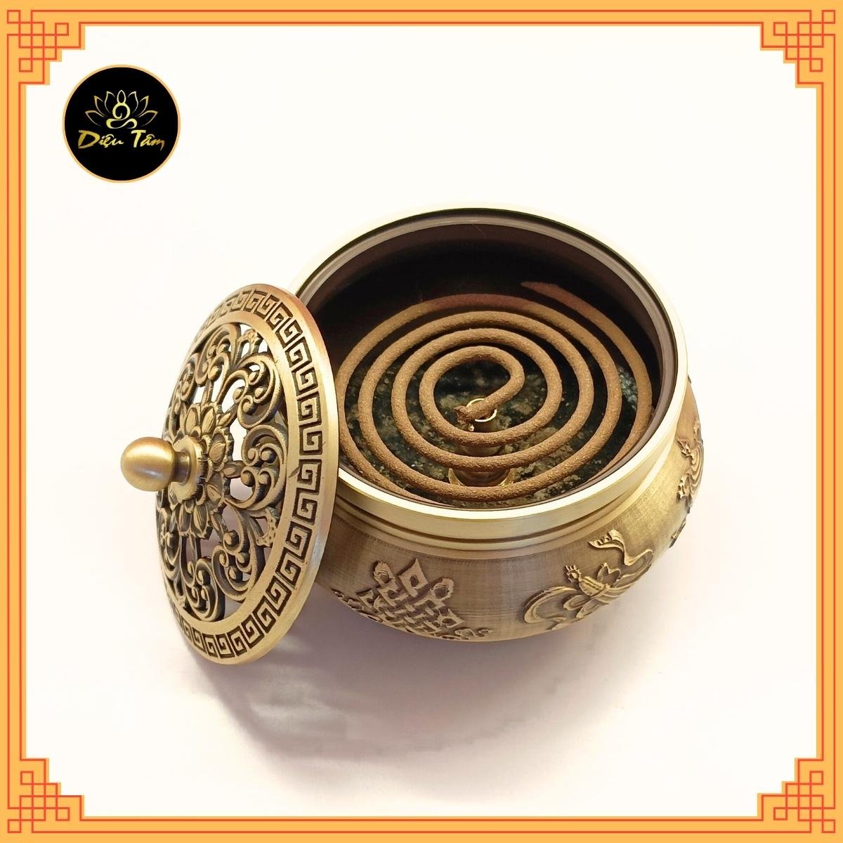 ✨Lư xông trầm hương Lư đồng khắc hình bát bảo cát tường lư đốt trầm tặng trụ và lót chống cháy đồ thờ cúng phong thủy Diệu Tâm