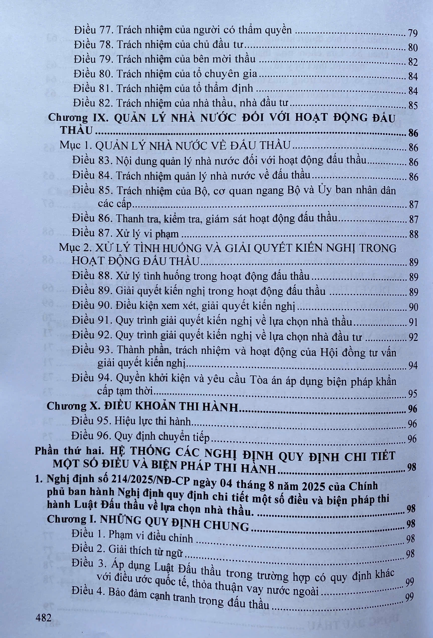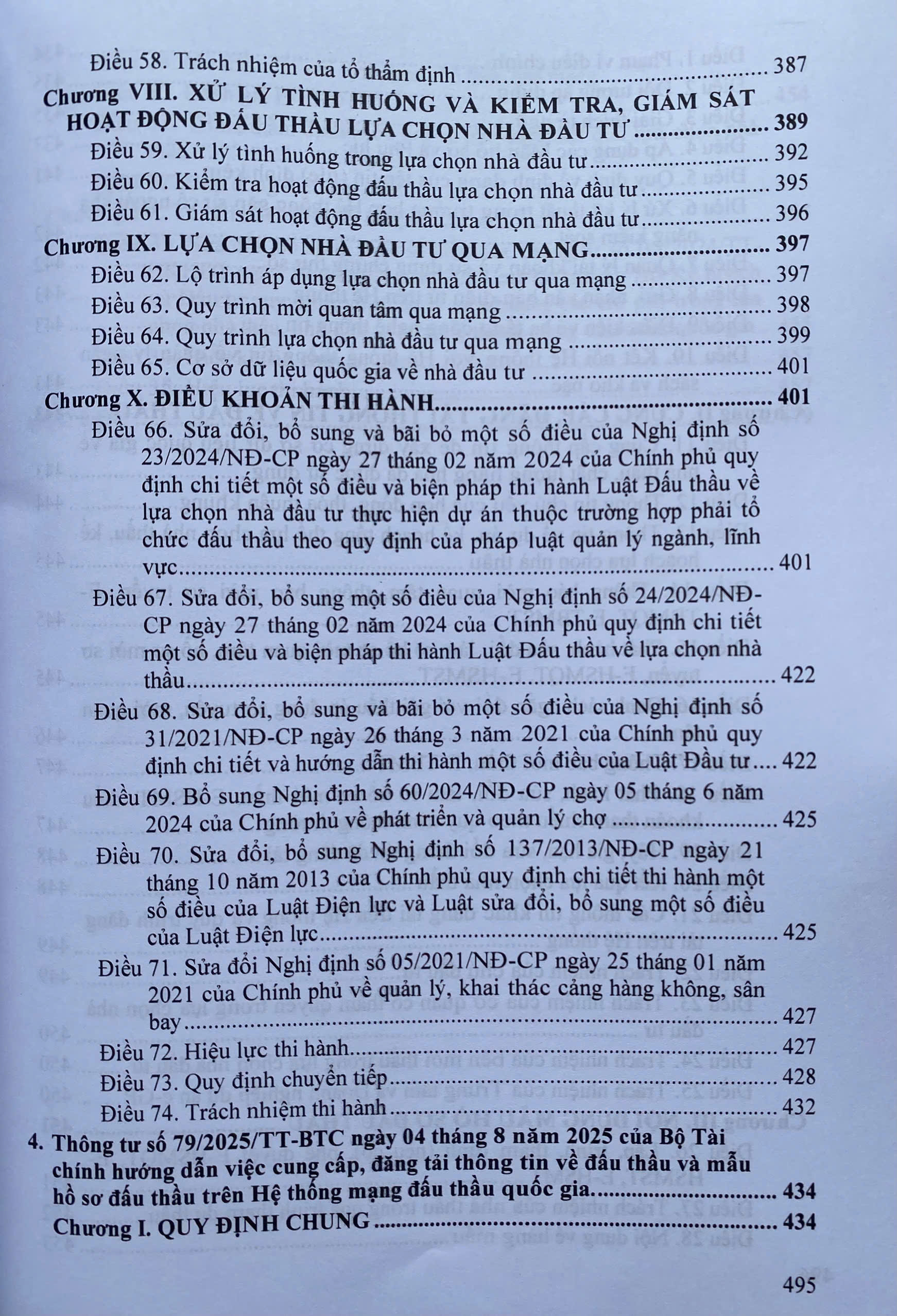 Luật sửa đổi, bổ sung một số điều của Luật Đấu thầu được Quốc hội Khóa XV thông qua tại Kỳ họp thứ 9 ngày 25 tháng 6 năm 2025, có hiệu lực thi hành từ ngày 01 tháng 7 năm 2025 (sau đây gọi là Luật). Để triển khai thi hành Luật kịp thời, toàn diện, thống nhất và hiệu quả, Thủ tướng Chính phủ ban hành Kế hoạch triển khai thi hành Luật sửa đổi, bổ sung một số điều của Luật Đấu thầu với các nội dung sau: Nghị định số 214/2025/NĐ-CP ngày 04 tháng 8 năm 2025 của Chính phủ ban hành Nghị định quy định chi tiết một số điều và biện pháp thi hành Luật Đấu thầu về lựa chọn nhà thầu; Nghị định số 225/2025/NĐ-CP ngày 15 tháng 8 năm 2025 của Chính phủ ban hành Nghị định sửa đổi, bổ sung một số điều của các Nghị định quy định chi tiết một số điều và biện pháp thi hành Luật Đấu thầu về lựa chọn nhà đầu tư; Thông tư số 79/2025/TT-BTC ngày 04 tháng 8 năm 2025 của Bộ Tài chính hướng dẫn việc cung cấp, đăng tải thông tin về đấu thầu và mẫu hồ sơ đấu thầu trên Hệ thống mạng đấu thầu quốc gia. Nhà xuất bản Hồng Đức xuất bản cuốn sách: LUẬT ĐẦU THẦU HỆ THỐNG CÁC NGHỊ ĐỊNH QUY ĐỊNH CHI TIẾT VÀ BIỆN PHÁP THI HÀNH