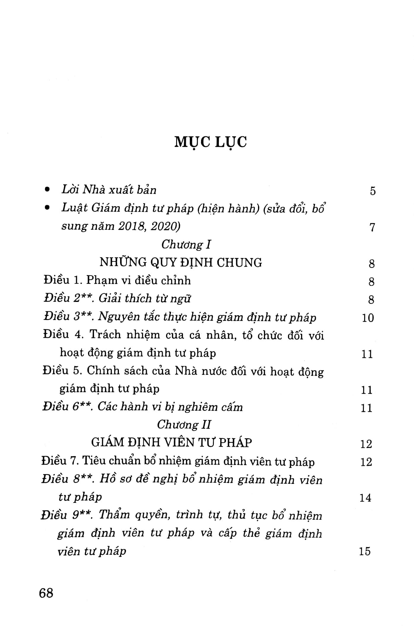 Tuy nhiên, trong quá trình thực hiện, một số quy định của Luật không còn phù hợp với thực tiễn và quy định của các luật mới ban hành. Ngày 20/11/2018, tại kỳ họp thứ 6, Quốc hội khóa XIV đã thông qua Luật sửa đổi, bổ sung một số điều của 37 luật có liên quan đến quy hoạch, trong đó có quy định sửa đổi khoản 1 Điều 40 Luật Giám định tư pháp năm 2012; ngày 10/6/2020, tại kỳ họp thứ 9, Quốc hội khóa XIV đã thông qua Luật sửa đổi, bổ sung một số điều của Luật Giám định tư pháp.