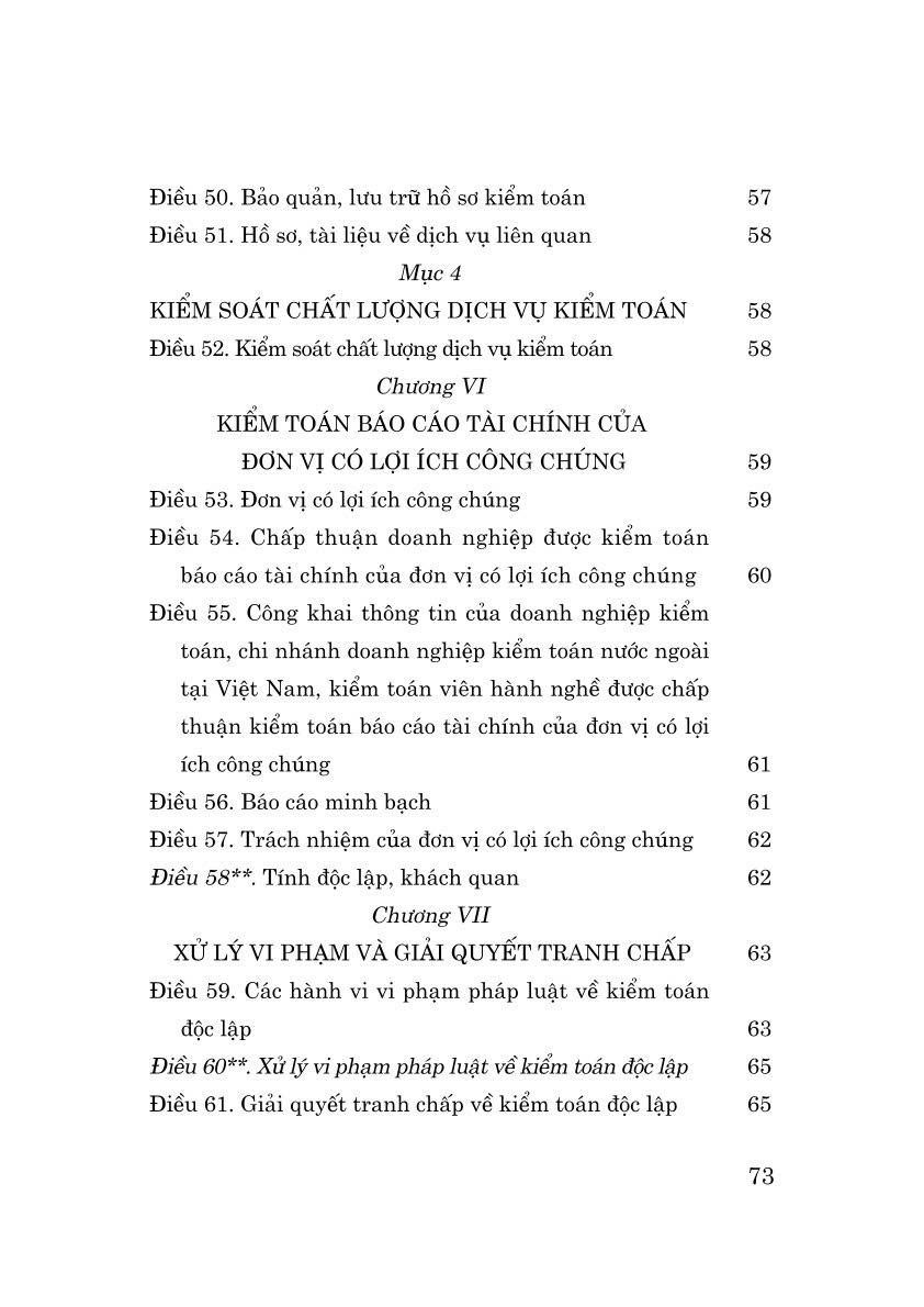 Cuốn sách gồm toàn văn Luật Kiểm toán độc lập năm 2011 (sửa đổi, bổ sung năm 2015, 2024)
