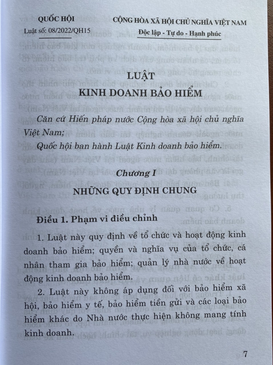Luật Kinh Doanh Bảo Hiểm số 08/2022/Qh15 đã được Quốc Hội thông qua ngày 16 tháng 6 năm 2022 ( Luật này có hiệu lực từ ngày 01 -01 -2023)