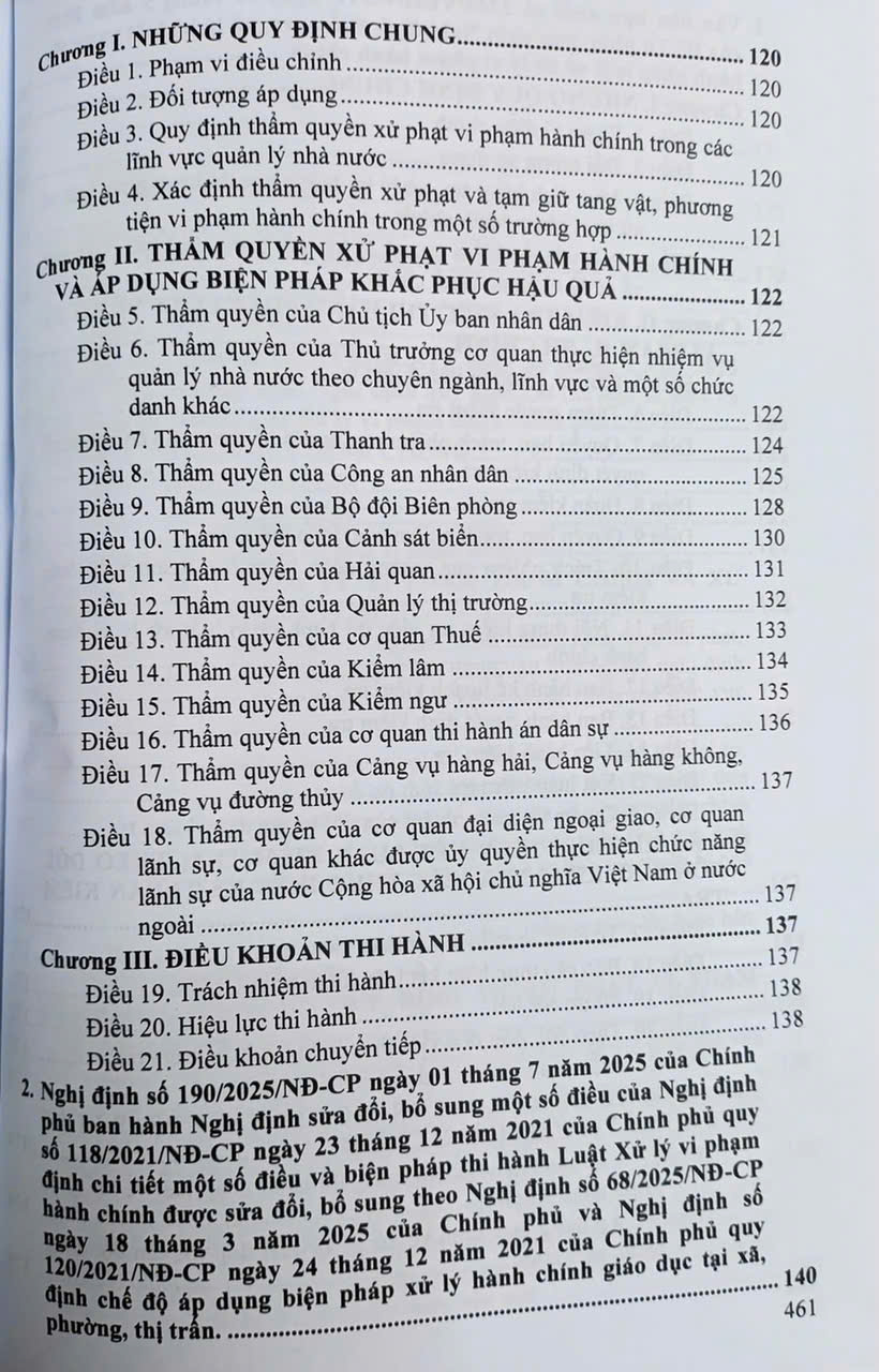 LUẬT XỬ LÝ VI PHẠM HÀNH CHÍNH (SỬA ĐỔI, BỔ SUNG NĂM 2025) CÁC VĂN BẢN QUY Đ.ỊNH CHI TIẾT VÀ BIỆN PHÁP THI HÀNH