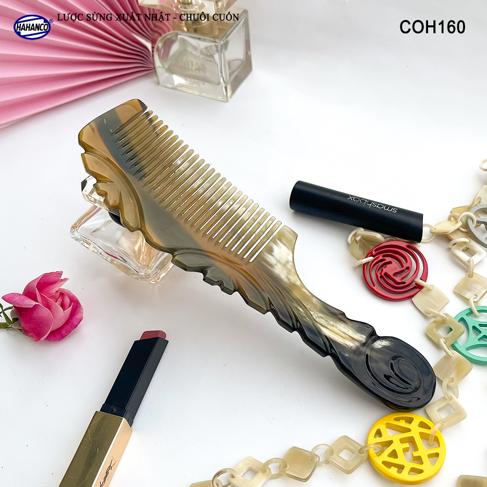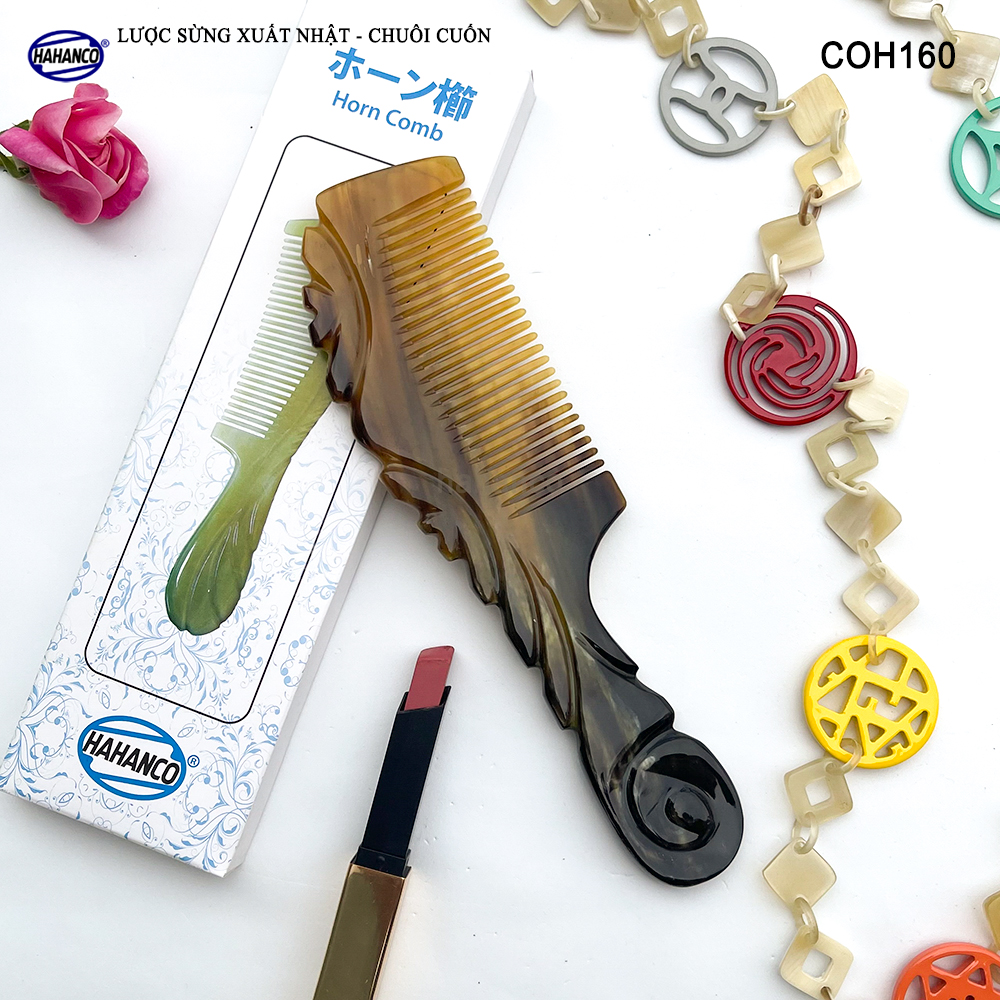 Lược Sừng Vân Nưa Chuôi Cuốn HAHANCO Họa Tiết Uốn Lượn Sắc Sảo - 0966218866