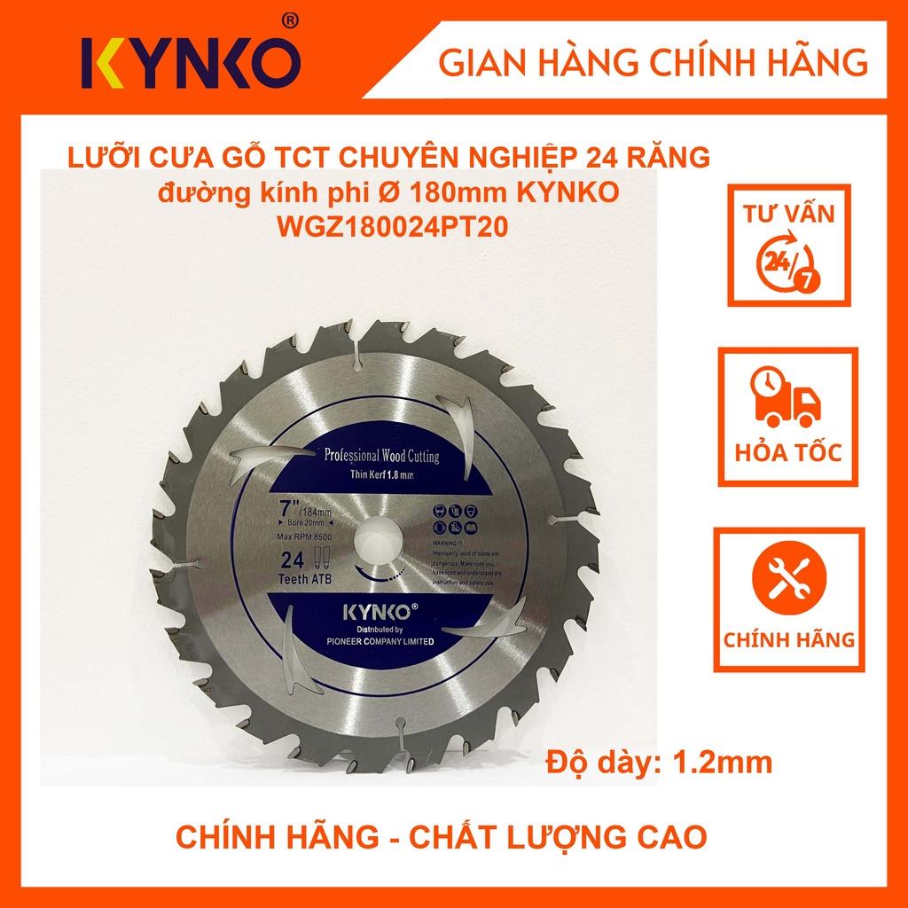 Mua tại TiktokLƯỠI CƯA GỖ TCT CHUYÊN NGHIỆP 24 RĂNG đường kính phi Ø 180mm KYNKO WGZ180024PT20 KYNKO CAM KẾT: