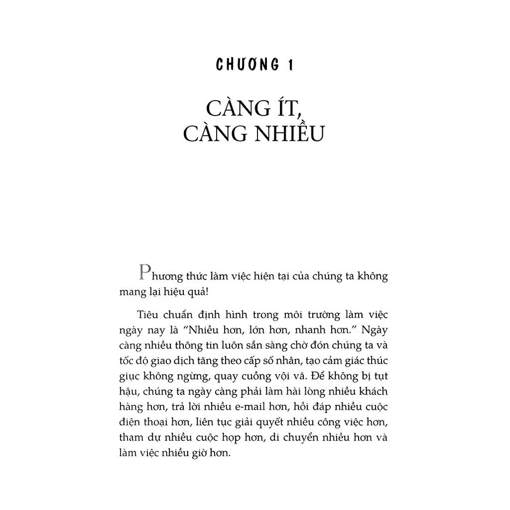 Tất cả hoạt động náo nhiệt này buộc con người phải trả giá thầm lặng: khả năng tập trung kém, thời gian dành cho nhiệm vụ được giao ít hơn và cơ hội để suy nghĩ sâu rộng giảm đi. Gần 75 % nhân viên trên toàn thế giới cảm thấy kiệt sức sau mỗi ngày làm việc. Các tổ chức làm suy yếu dần khả năng hoạt động hiệu quả bằng việc không ngừng khai thác đến cùng kiệt mỗi cá nhân trong tổ chức đó. Tiêu chuẩn nhiều hơn, lớn hơn và nhanh hơn tạo ra những giá trị hẹp, nông cạn và không bền vững. Vậy, chúng ta cần làm gì để thay đổi điều đó?