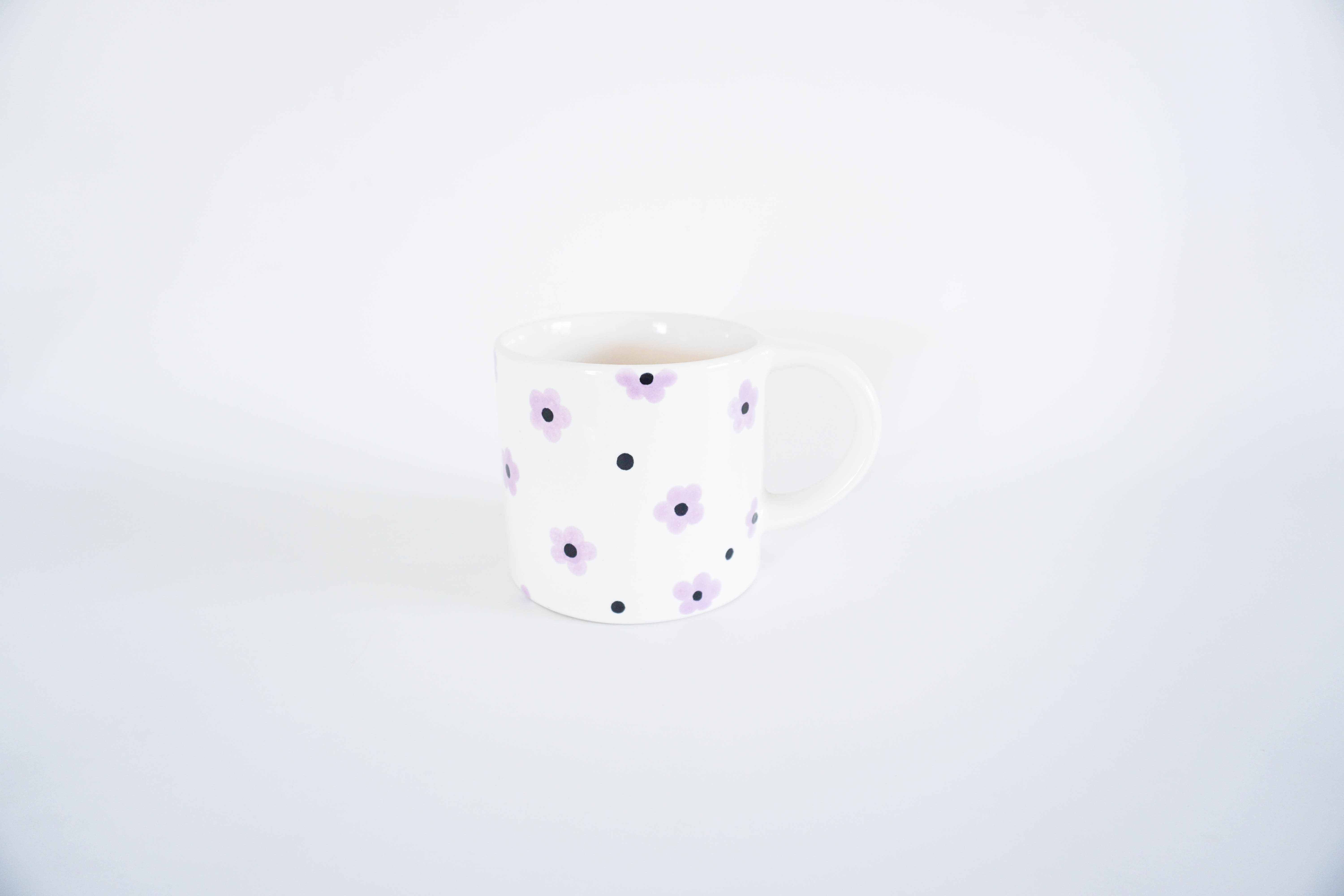 • Ly gốm sứ được sản xuất thủ công bằng tay với chất lượng bền bỉ với thế gian. Họa tiết hoa màu tím vẽ tay trên nền màu kem được chăm chút bởi những nghệ nhân nhiều năm trong nghề.