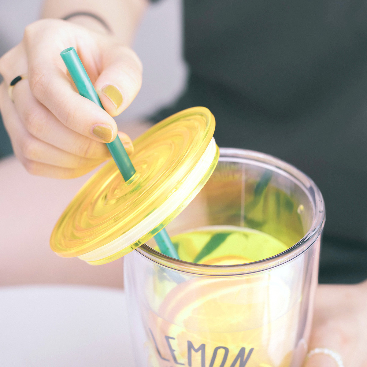 Ly nhựa 2 lớp Lock&Lock màu vàng HAP507YEL 750ml - Hàng chính hãng, có ống hút, có nắp đậy - JoyMall