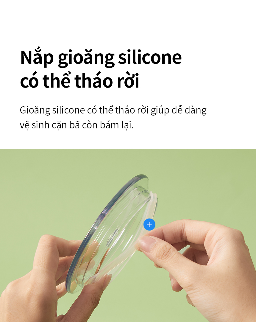 Nắp có gioăng silicone và lỗ cố định ống hút: