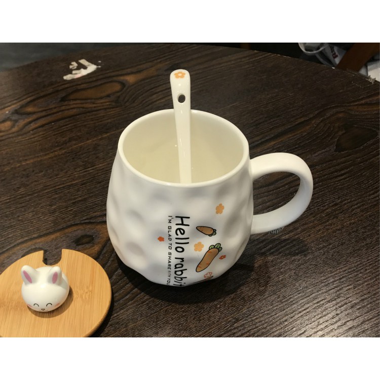 Ly Thỏ bằng sứ cao cấp cực kì dễ thương Chất Liệu: Sứ Cao Cấp Sản Phẩm Bao Gồm: Ly, Nắp, Muỗng Thể Tích: 500ml Sản phẩm bao gồm : Ly, muỗng, nắp có hình