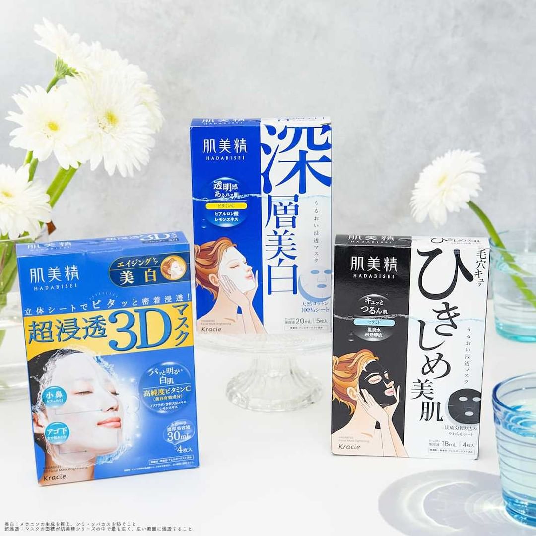 Mặt Nạ 3d Dưỡng Ẩm – Ngăn Lão Hóa Kracie Hadabisei 3d Facial Mask Aging Care Quy cách: 1 hộp 4 miếng (30 mL/miếng) Mã Vạch: 4901417630674 Dòng mặt nạ 3D ôm sát đường nét khuôn mặt, mặt nạ dạng tấm mang lại khả năng dưỡng ẩm cao hiệu ứng thông qua huyết thanh dày, tập trung. Không chứa hương liệu, không tạo màu, đã được kiểm nghiệm dị ứng. Chăm sóc dưỡng ẩm toàn diện cho làn da rạng rỡ và trong trẻo. Công thức với Thành phần kết cấu da độc đáo của Hadabisei (khế, chiết xuất nước mắt Job, ceramide yuzu, Calendula officinalis, glycerin) và chất lỏng lên men gạo thành phần tăng cường thẩm thấu.