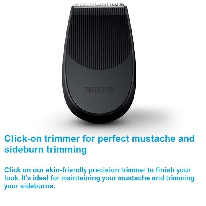 - Đầu tỉa dễ lắp ráp giúp tỉa ria mép và tóc mai hoàn hảo. Dùng đầu tỉa chính xác thân thiện với làn da để hoàn tất diện mạo của bạn. Đây là phụ kiện lý tưởng để bảo vệ bộ ria mép và cạo tóc mai đẹp. Thời gian sử dụng không dây 60 phút