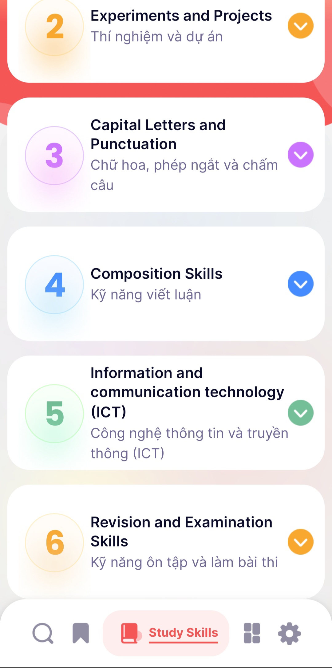 • người dùng có thể search theo từ hoặc xem tất cả các từ trong cùng một môn học