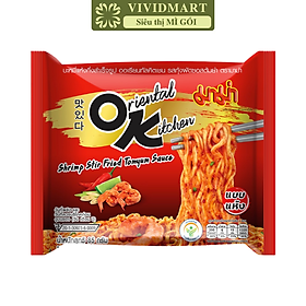 Sợi mì MAMA từ lâu nổi tiếng béo thơm ngon vô đối, nay thêm sốt tomyum chua cay bảo đảm ghiền xỉu luôn.Hẳn là ai cũng biết Thái Lan là thiên đường mì gói với đủ các thương hiệu, mẫu mã, hương vị khác nhau, nhưng nói đến mì cay OK ( Oriental Kitchen ) thì không thể bỏ qua đối với khách du lịch Thái Lan và các tín đồ săn hàng Thái.Mì sốt tomyum kèm sốt cay nên ăn ghiền lắm, đậm vị cực kì, sợi mì to, dai như mì hàn quốc . Sợi mì vàng dai ngon hòa quyện trong nước súp Mama Thái Lan đậm đà thấm đều trong từng sợi cùng hương thơm lừng quyến rũ ngất ngây. Mì Mama dạng gói tiện lợi thơm ngon cực đã là một lựa ngọn hấp dẫn cho những bữa ăn nhanh gọn, đơn giản và đầy đủ dưỡng chất. Loại mì: Mì trộn Sợi mì: Sợi to, dai Khối lượng: 85g Thành phần: Bột mì (72.50%), shortening (8.20%), muối, bột tỏi, hương tom yum, bột ớt, chất điều chỉnh độ chua [E 451(i), E 500(ii)], chất ổn định (E 501(i)), chất tạo gel (E466). Cách dùng: Luộc mì với nước sôi tầm 3 phút. Vắt nước ra và đều gói gia vị với khoảng 3 muỗng canh nước ấm, trộn đều là dùng được ngay, dùng ngon hơn khi dùng nóng. Bảo quản: Bảo quản nơi khô ráo, thoáng mát, tránh ánh nắng trực tiếp. Không để gần hóa chất hoặc sản phẩm có mùi mạnh. Thương hiệu: Mama (Thái Lan) Sản xuất tại Thái Lan