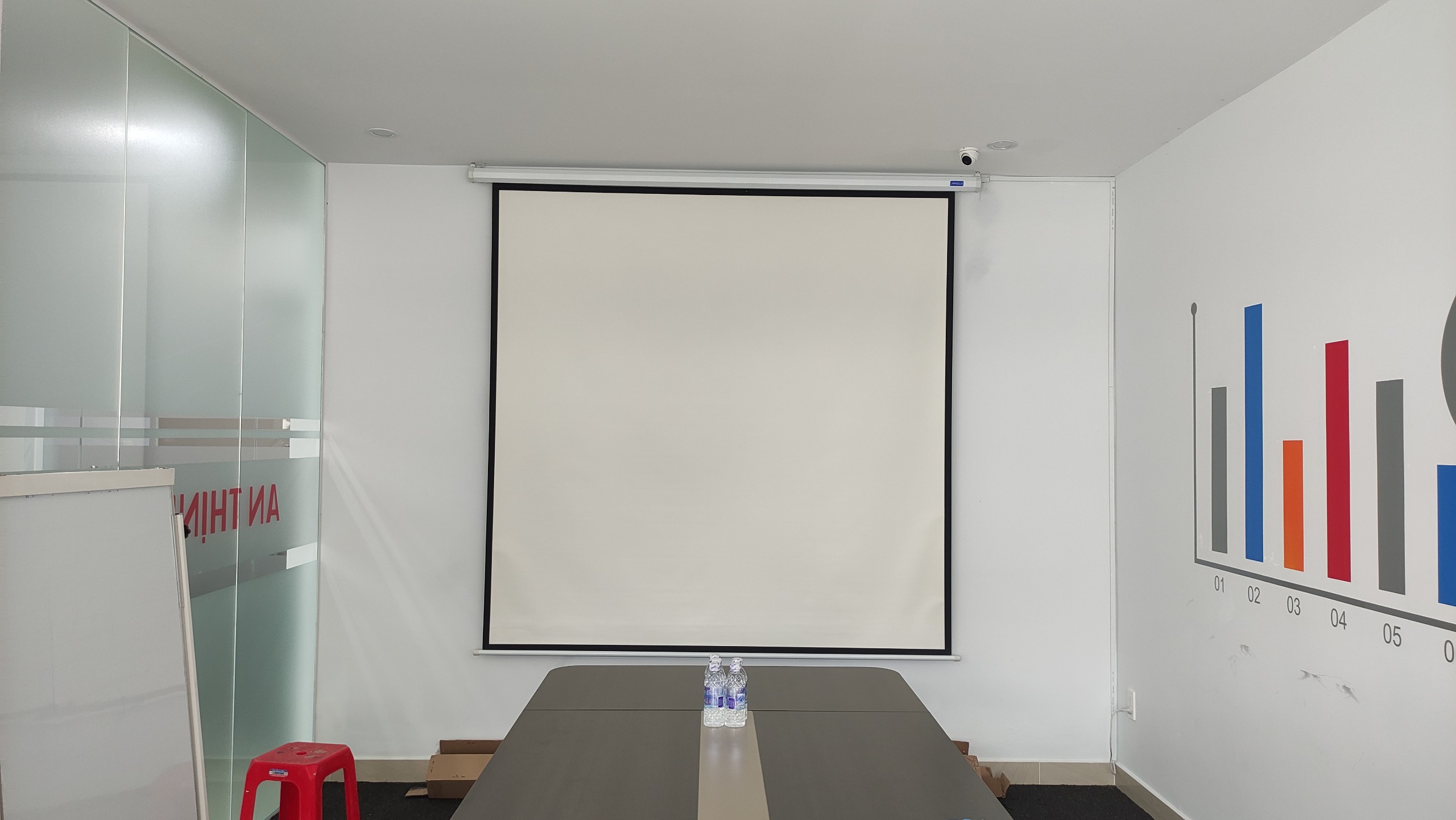 • Màn chiếu điện 135" kích thước 2m44 x 2m44 Dài phủ bì màn 2m77