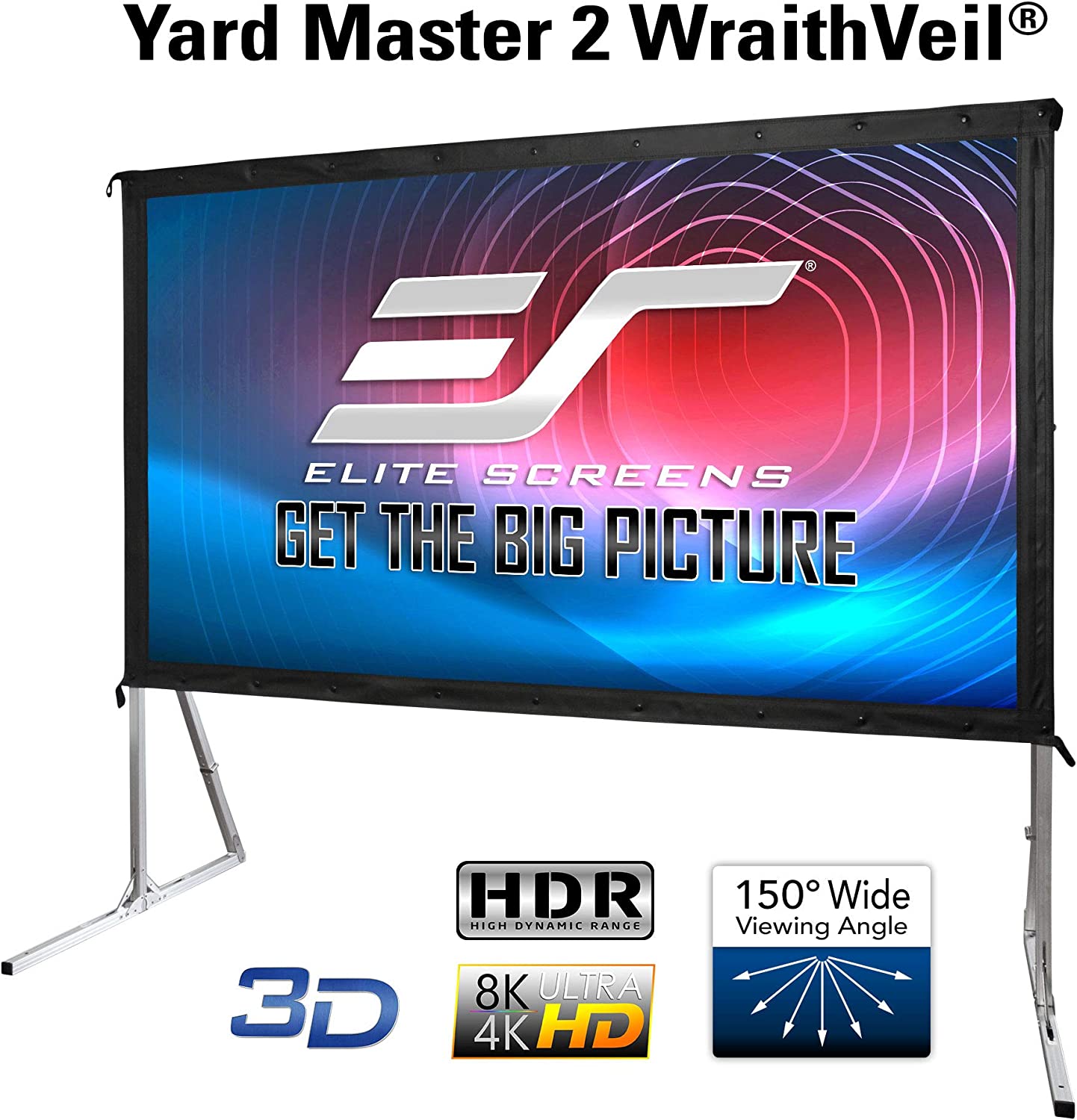 Elite Screens Yard Master 2, 100 inch Outdoor Projector Screen with Stand 16:9, 8K 4K Ultra HD 3D