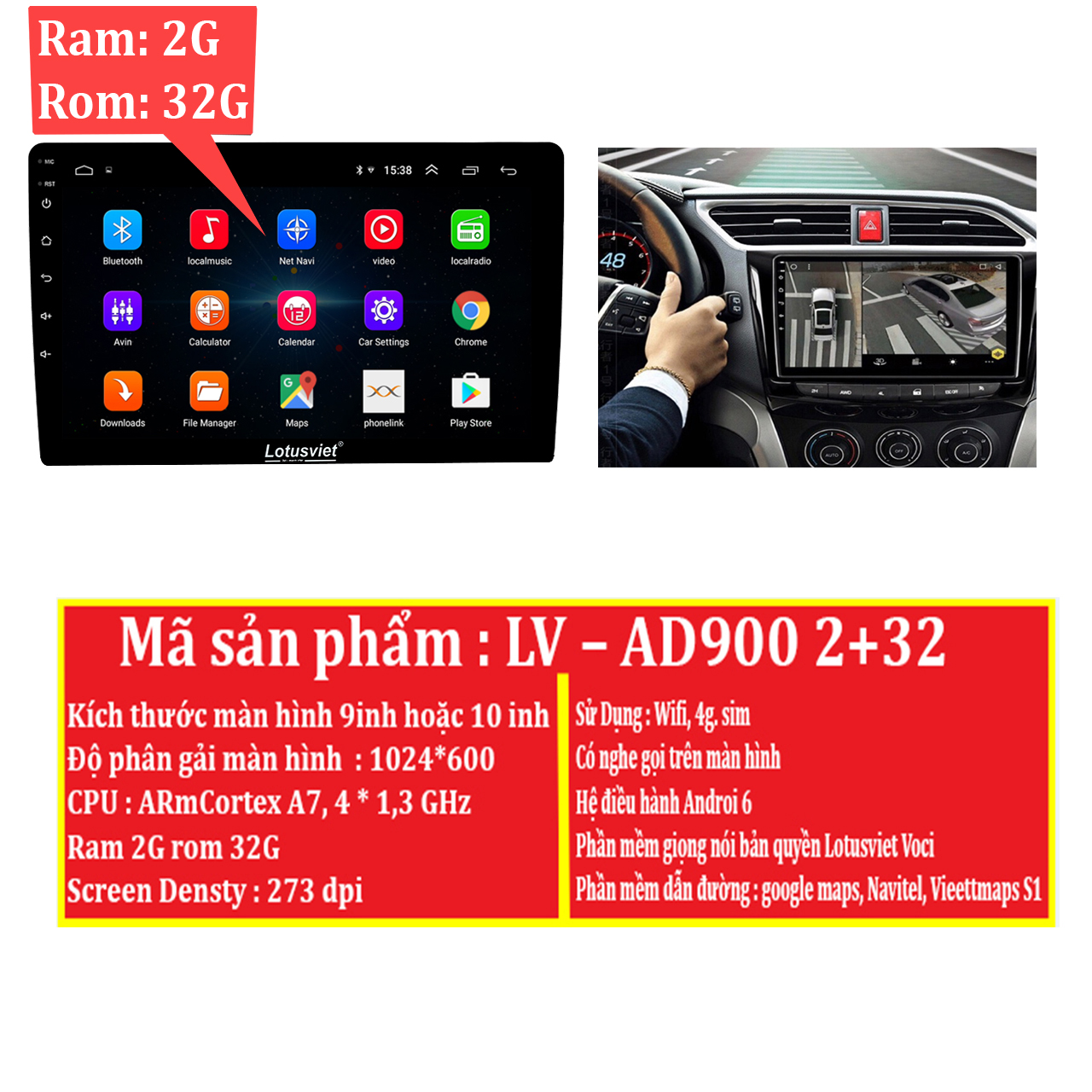 Màn hình DVD Android cao cấp Wifi, 4G dùng cho tất cả các loại xe ô tô Ram 2G Rom 64G - Hàng Chính Hàng - Mã: LV–AD900 2+32 Màn hình DVD android ô