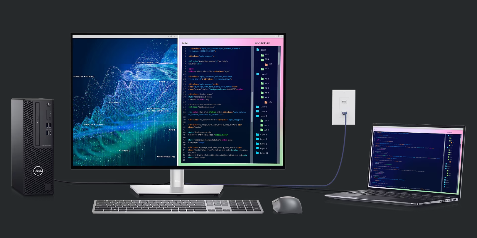 Màn hình Dell P2722HE 27Inch USB-C/RJ45 có kiểu dáng hiện đại, gọn gàng Được DELL thiết kế rất thông minh, màn hình Dell P2722HE 27Inch USB-C/RJ45 IPS có thể giấu dây vào trong để giữ cho không gian làm việc của
