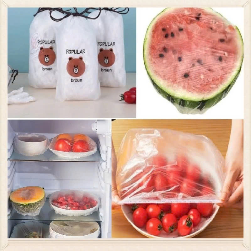 Màng bọc thực phẩm đa năng có chun co giãn thông minh ( Set 100 cái tặng kèm túi gấu dễ thương) *Màng bọc thực phẩm đa năng có chun co giãn thông minh là