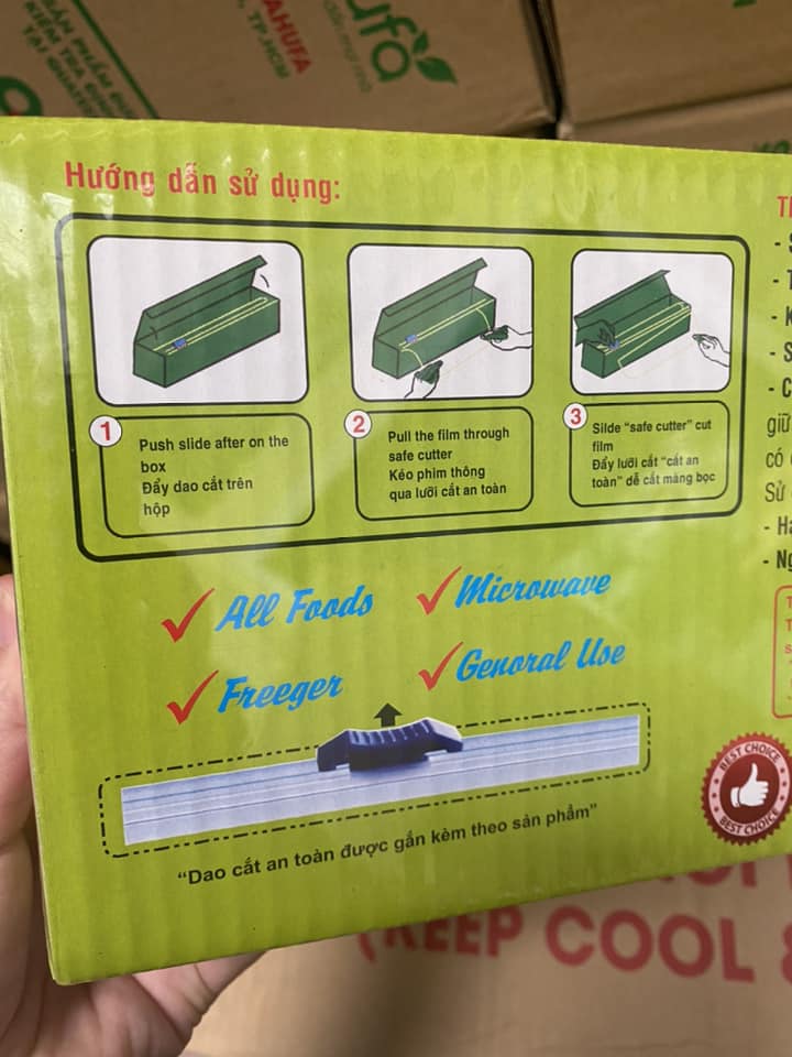 - Màng bọc thực phẩm PVC chỉ thích hợp với những loại thực phẩm chưa qua chế biến và cần phải rửa sạch lại thực phẩm khi chế biến món ăn. Thông tin sản phẩm: