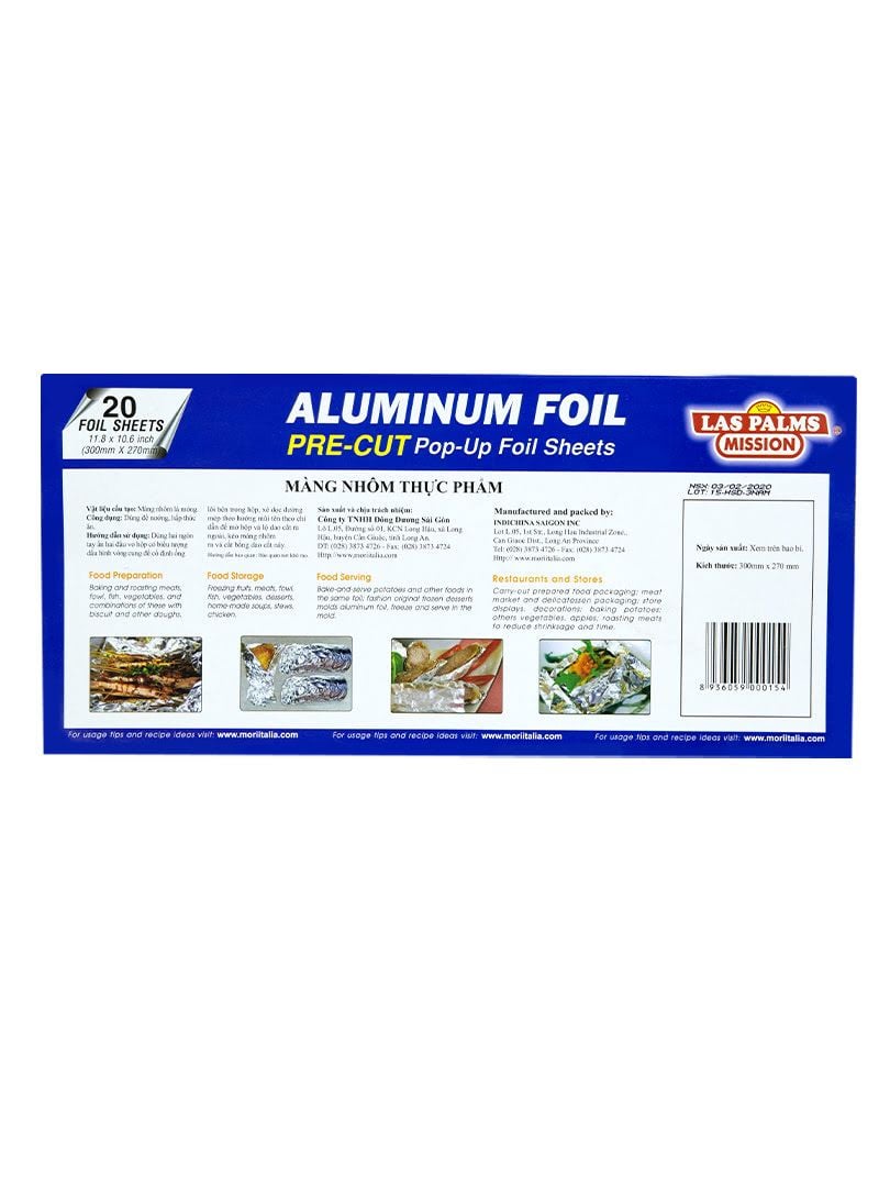 Màng Nhôm TP Las Palms 30cmx27cm (Hộp 20 Miếng) - MNTP00000154 - Công dụng: Nướng, bao gói, bảo quản thực phẩm. - Bảo quản: Bảo quản nơi thoáng mát, khô ráo. Tránh xa tầm tay