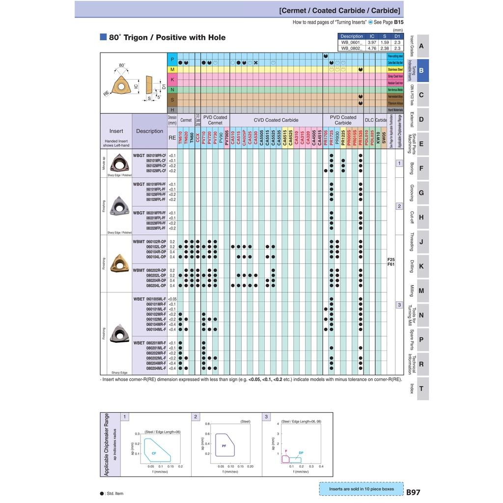 Mảnh dao tiện lỗ phủ PVD Kyocera Model WBGT060104L-F PR930 Hàng Chính Hãng Chất Lượng Uy Tín