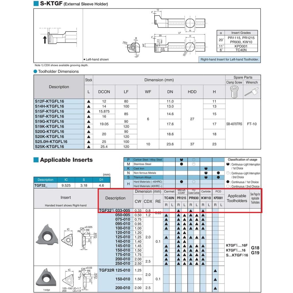 ✨Mảnh dao tiện rãnh phủ PVD Kyocera Model TGF32R100-010 PR1215