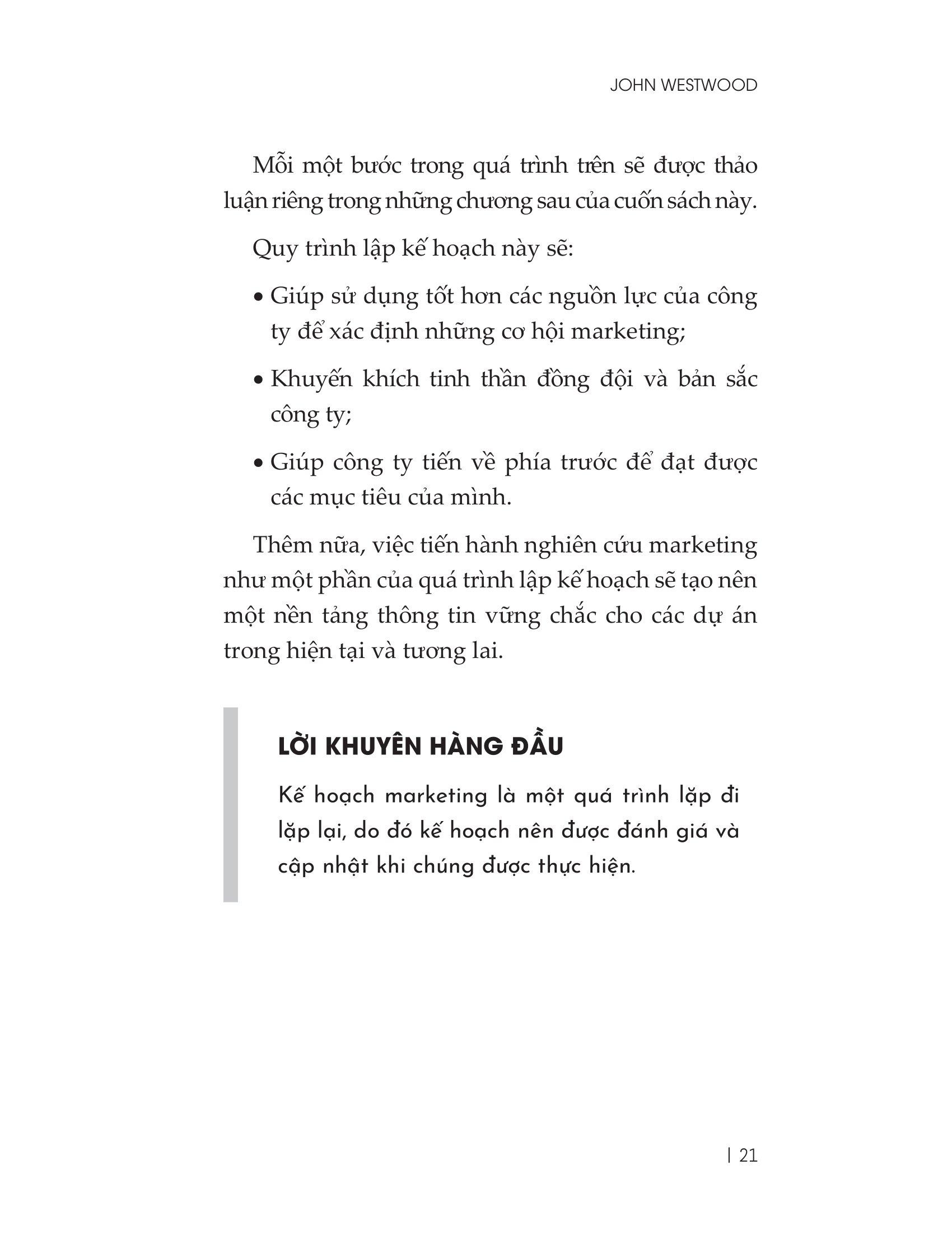Tác giả John Westwood sẽ cung cấp một cách tiếp cận rõ ràng, hiệu quả và cập nhật những thông tin mới nhất về marketing qua , sử dụng web thương mại, di động và phương tiện truyền thông xã hội.
