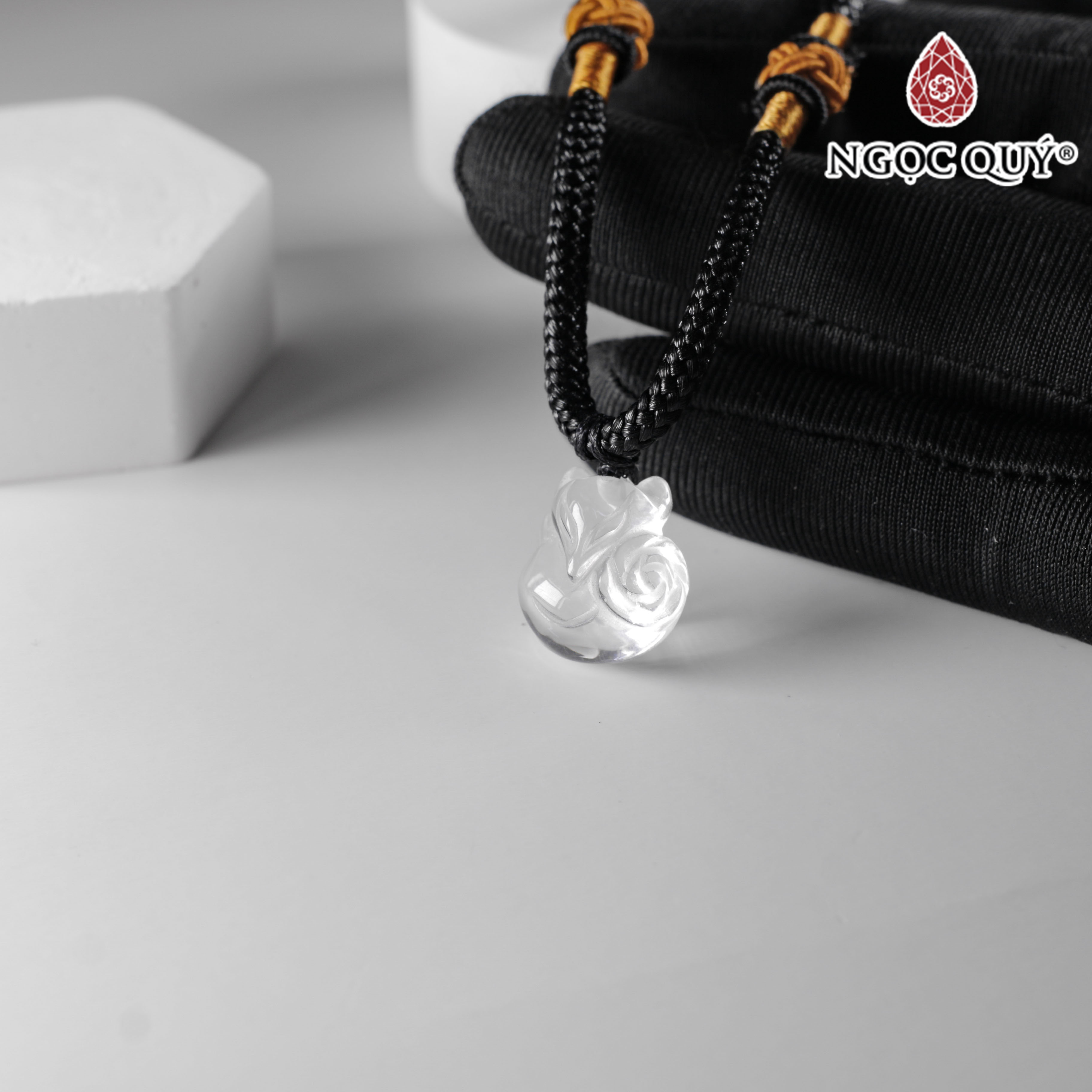 Mặt dây chuyền hồ ly đá thạch anh trắng - Hợp mệnh kim, mệnh thủy | Ngọc Quý Gemstones |