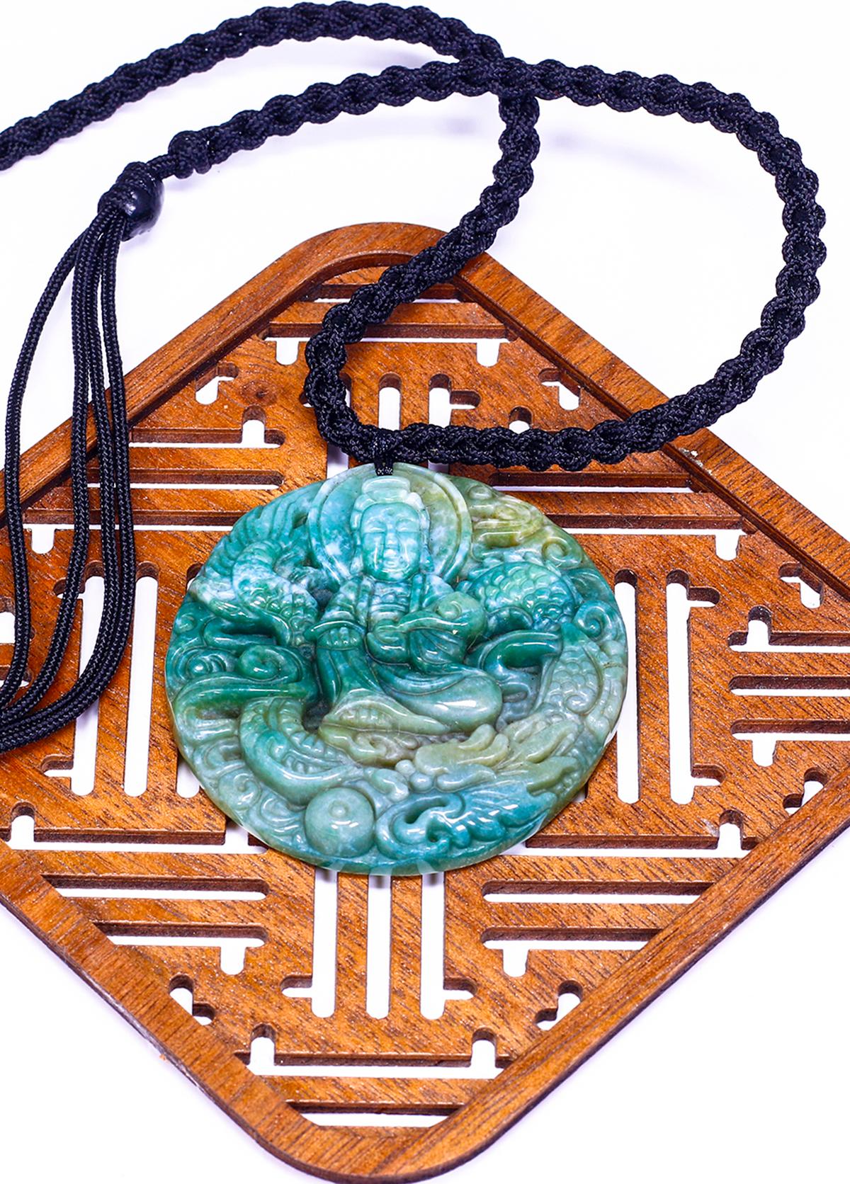 Mặt dây chuyền Phật Bà cưỡi rồng đá mã não xanh - Hợp Mệnh Mộc & Hỏa [ Ngọc Quý ]