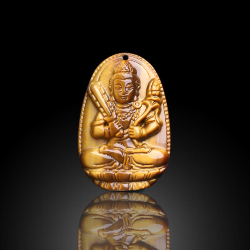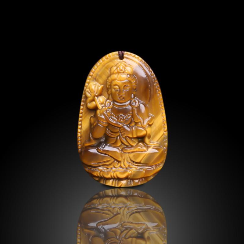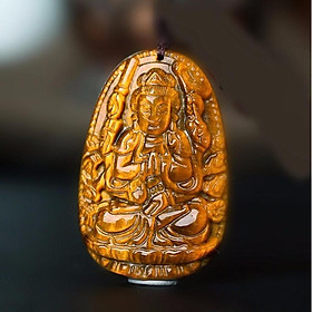 Mặt dây chuyền phật bản mệnh đá mắt hổ vàng nâu - Hợp mệnh thổ, mệnh kim | Ngọc Quý Gemstones |