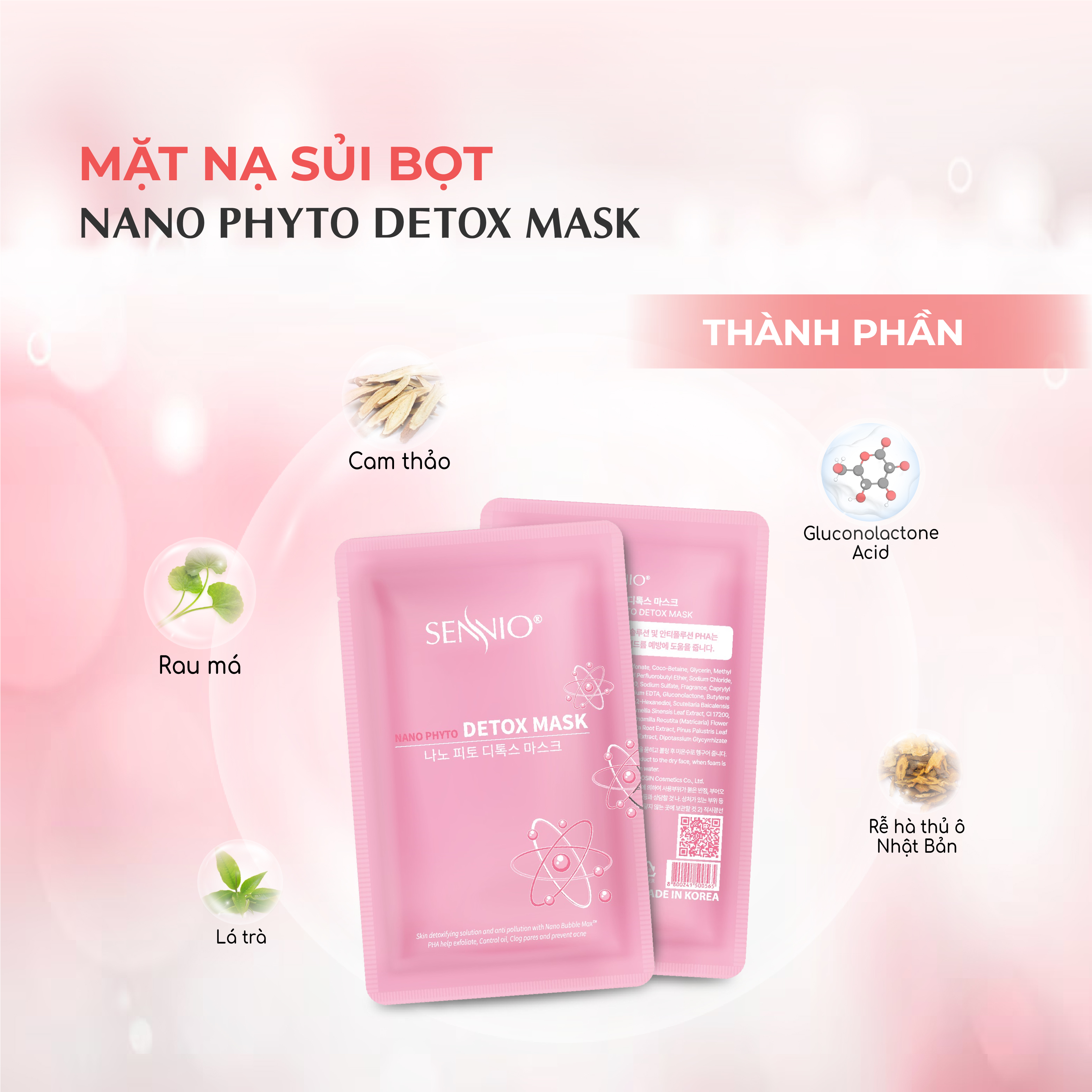 Mua tại TiktokTHÔNG TIN SẢN PHẨM Mặt nạ sủi bọt thải độc dưỡng trắng da Sennio SNO 808-48