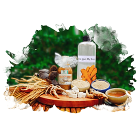 - Tinh nghệ, sâm, bạch truật, tam thất, mật ong rừng, rượu gạo nguyên chất, linh chi đỏ, đương quy, bạch phục linh và một số vị thuốc bắc, *Tất cả hỗn hợp được hạ thổ trên 100 ngày để giảm tính axit của nghệ và các nguyên liệu thuốc bắc. -CÔNG DỤNG: Dùng để xông hơ sau sinh, đắp mặt nạ, sáng da, làm giảm mụn, mờ tàn nhang, nám sạm, tắm trắng và giảm các loại mụn ở lưng. -CÁCH DÙNG:
