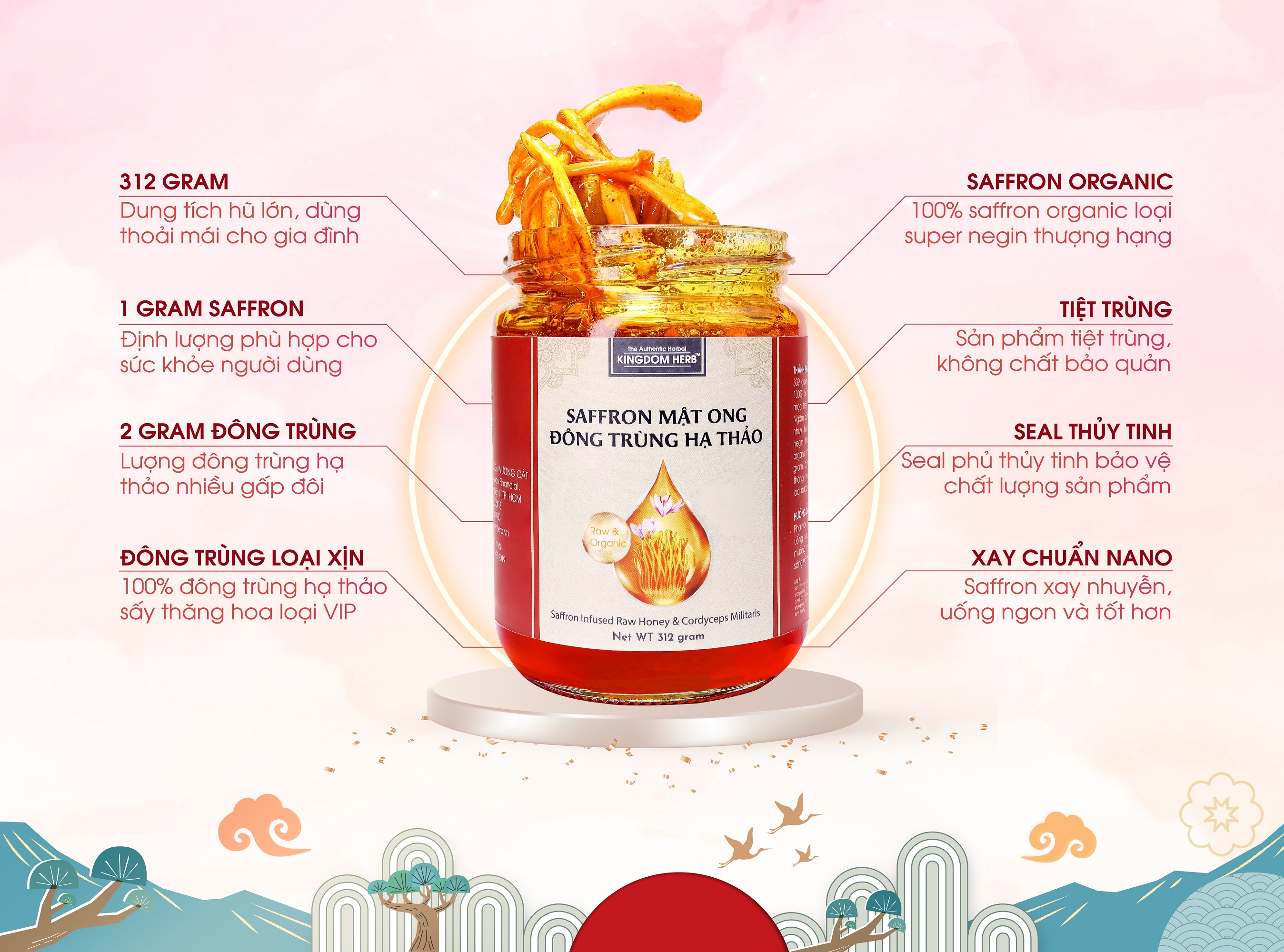 Saffron mật ong đông trùng hạ thảo Kingdom Herb đảm bảo 5 KHÔNG: