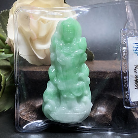 Mặt Phật Bà đứng Cẩm Thạch xanh trắng lí - Chất liệu: Ngọc Cẩm Thạch tự nhiên. - Màu sắc: Xanh lí phớt trắng - Kích thước: ngang 49mm, cao 23mm, dày 4mmx8mm - Mã kiểm định: 86691 - Tiêu chuẩn