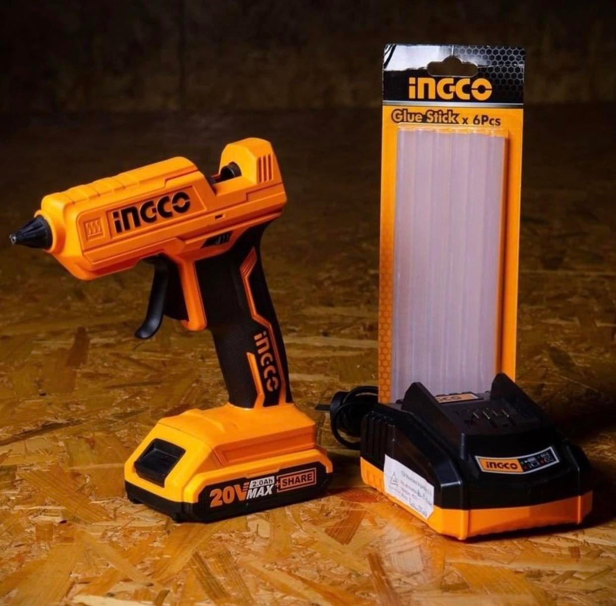 Súng bắn keo nến dùng pin 20v INGCO rất tiện ích những nơi ko có điện. Giá thân máy 265.000đ